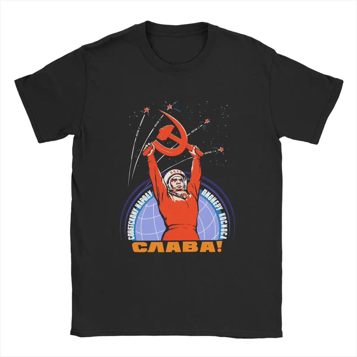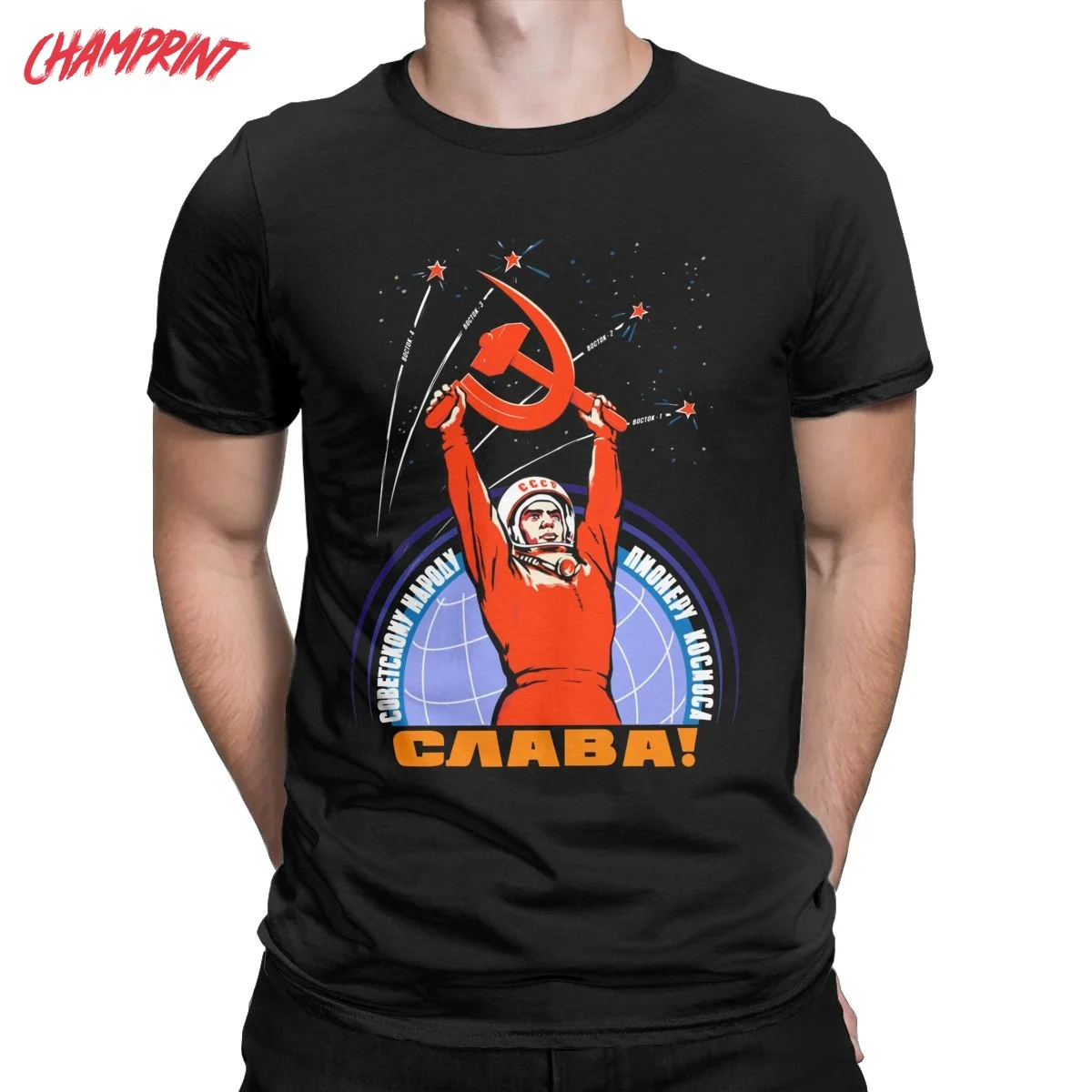 Советского Союза Гагарин футболка Для мужчин натуральный хлопок футболки СССР космонавт астронавт футболка с надписью СССР, футболка Топы с короткими рукавами 6XL
