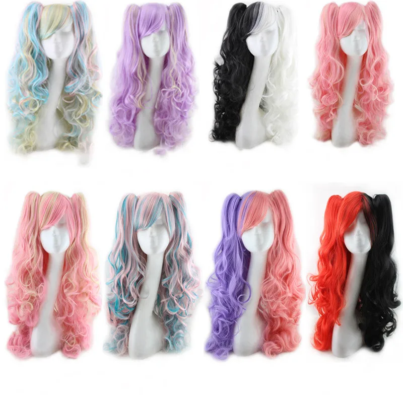 Парик для косплея данганронпа Женский, термостойкие искусственные волосы с длинными вьющимися хвостиками, термостойкие искусственные волосы для косплея, 2021