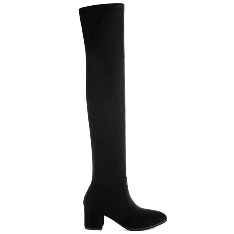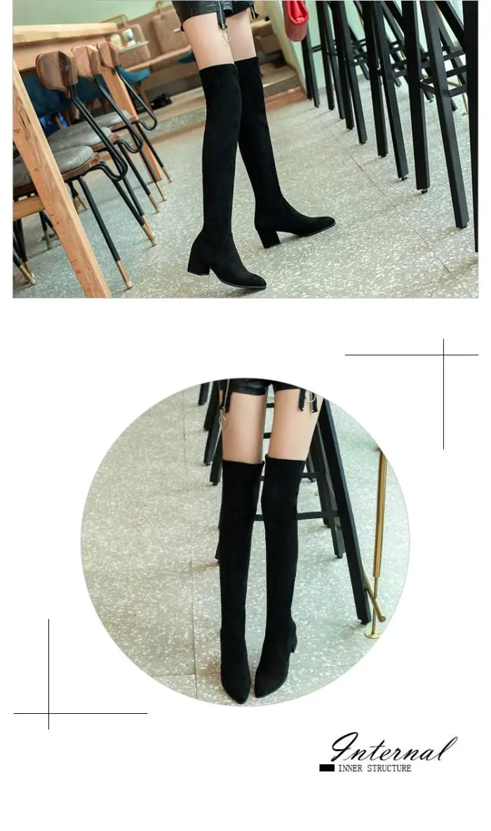 Женские сапоги выше колена, зимние универсальные сапоги с острым но...