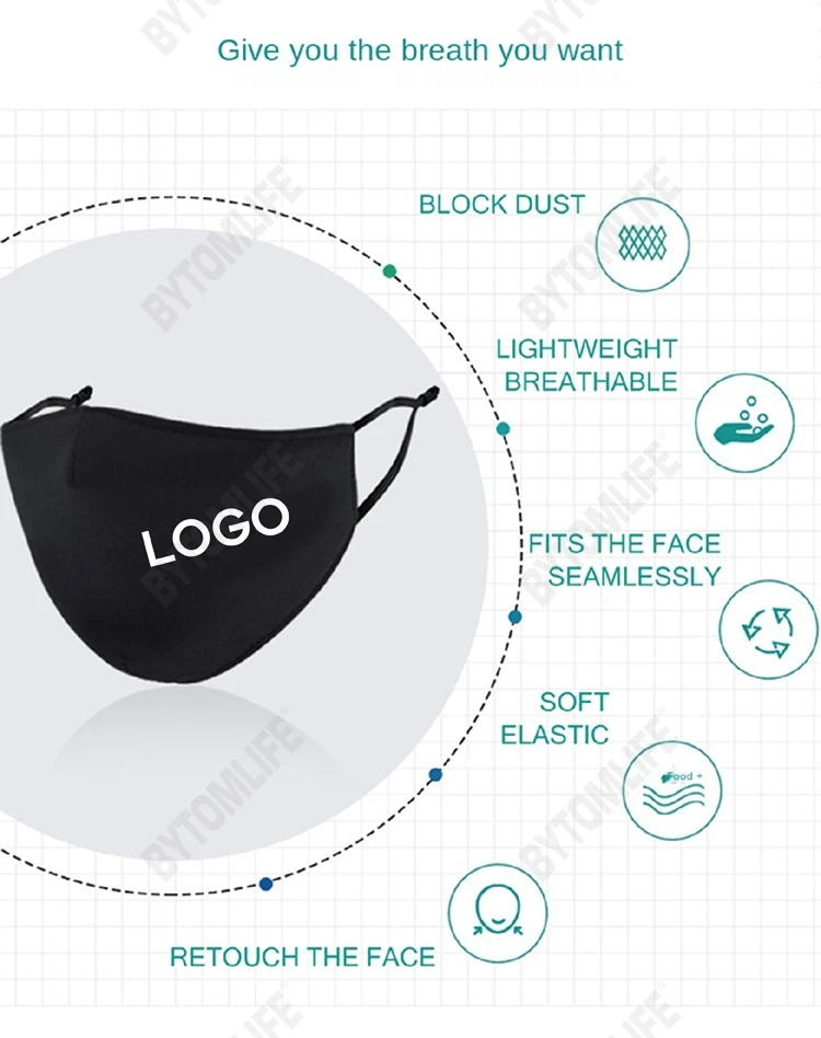Популярная дышащая многоразовая маска для рта из полиэстера с класс...