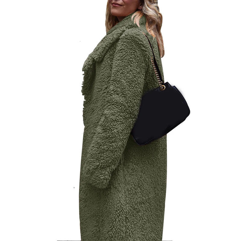 Новинка 2021, зимние утепленные флисовые пальто, женская длинная теплая куртка с длинным рукавом и лацканами из искусственного меха, женский кардиган Тедди, верхняя одежда