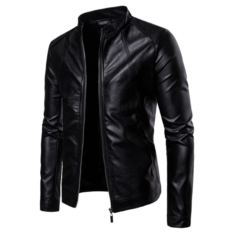 Куртка мужская из искусственной кожи на молнии с воротником-стойкой