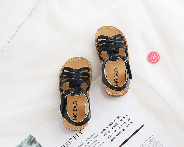 Детские сандалии в римском стиле, для мальчиков и девочек, черные, ...
