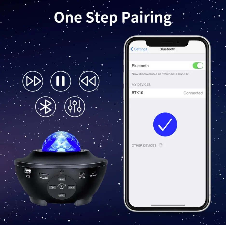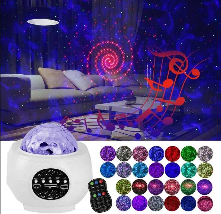 Очень качественный проектор (колонка) - Имеет 10 видов изображений звездного неба, галактики и.т.л. Проектор имеет динамик, с помощью которого можно на нем слушать музыку и наслаждаться красивым изображением.Подключается к динамику можно как и через usb входа, так и через Bluetooth сотового телефона.У меня айфон 11 работает все прекрасно.Ребёнок танцует и рассматривает красивые виды на стенах и очень доволен.Но купила я его я его из-за того, что ребенок боится спать в темноте - я включаю на проектора ему колыбельную и звёздное небо, так нам проще стало засыпать.