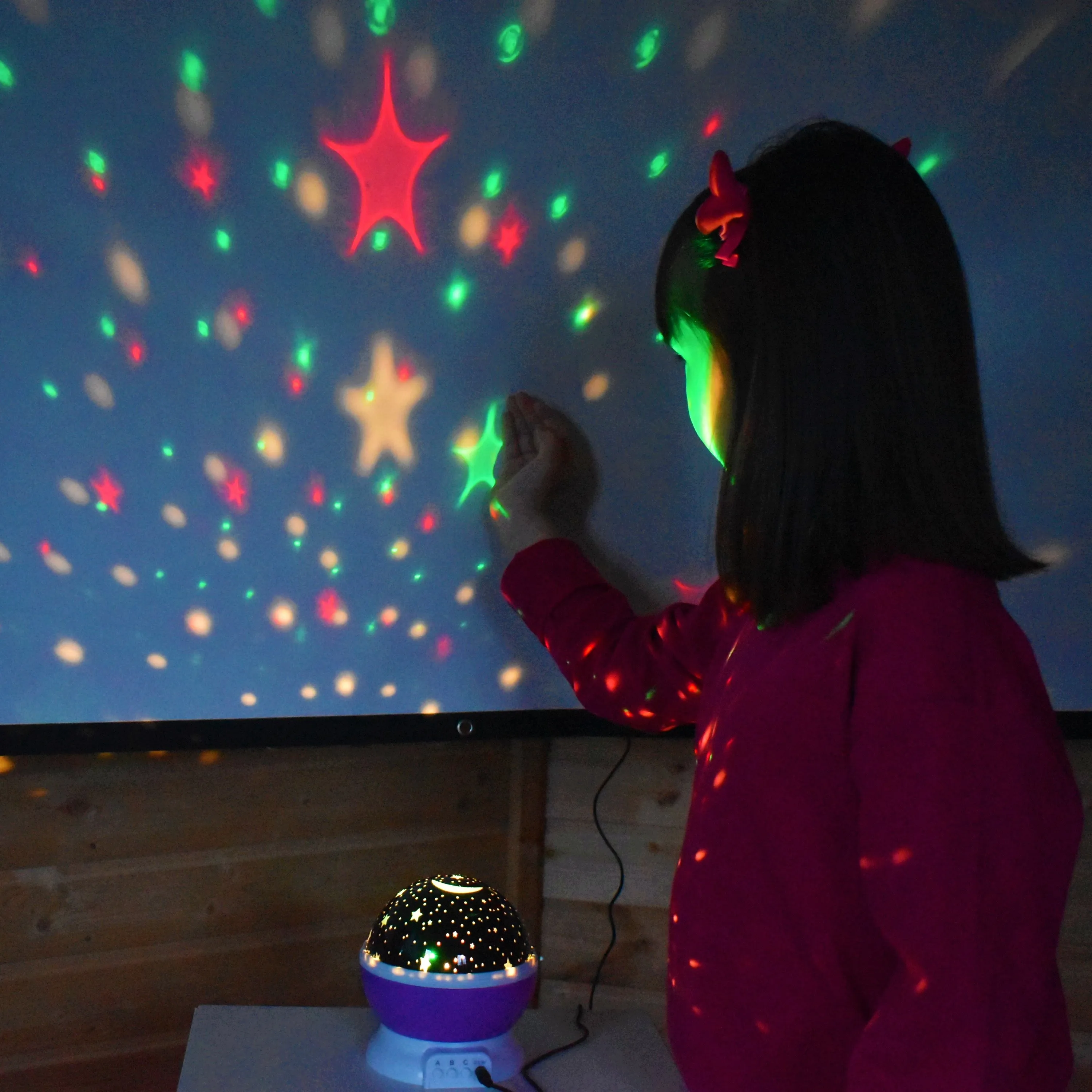 Завораживает движение звёзд не только детей, но и взрослых. Создаёт уютную и успокаивающую обстановку. Сейчас такой ночник есть по другой ссылке в этом магазине. При эксплуатации ночника можно выбрать один из трёх режимов свечения: 1.Яркие белые звёзды. 2.Разноцветная проекция (зелёный, красный, синий) 3.Сферическое движение. Ребёнку можно предложить самому выбрать цветовую дорогу в сон. Лампочки светят разным цветом. Понажимав три кнопки управления A - B - C, легко разобраться и без инструкции со сменой режимов. Плафоны, а их два, съёмные. Если верхнюю белую крышку не снимать, то ночник будет как ночник, без проекции. Для красивой и яркой проекции белую крышку надо снять и оставить только чёрный плафон с перфорацией. На плечи школьников ложится большая эмоциональная нагрузка, а такой ночник создаёт атмосферу релакса и расслабления, снимает напряжение, накопившееся за день. Всем нравится. Спасибо.