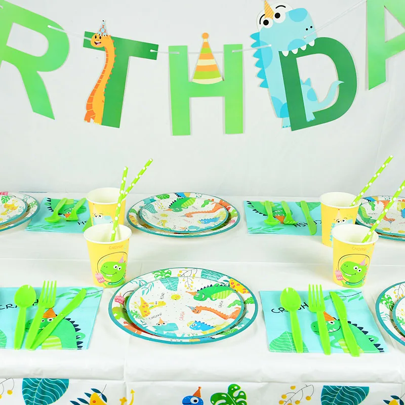 Одноразовая посуда с динозавром, тематические праздничные бумажные тарелки, салфетки для детей, подарок на день рождения ребенка, праздничное украшение для лета