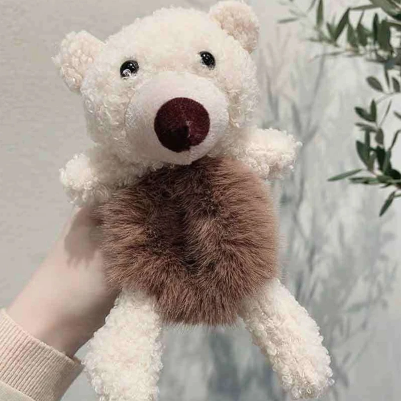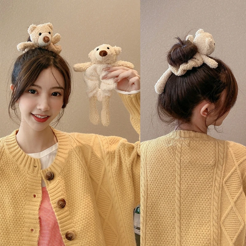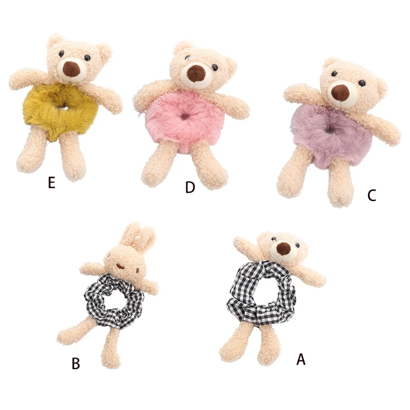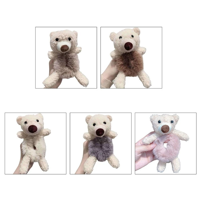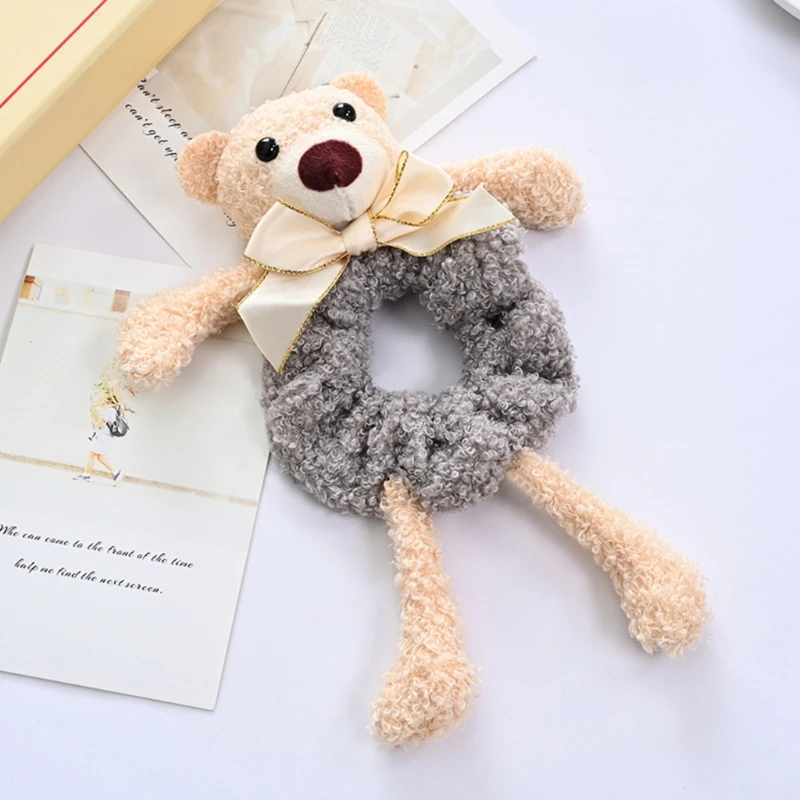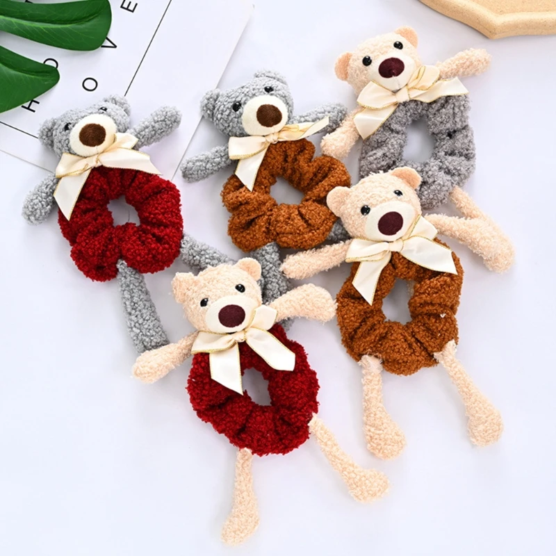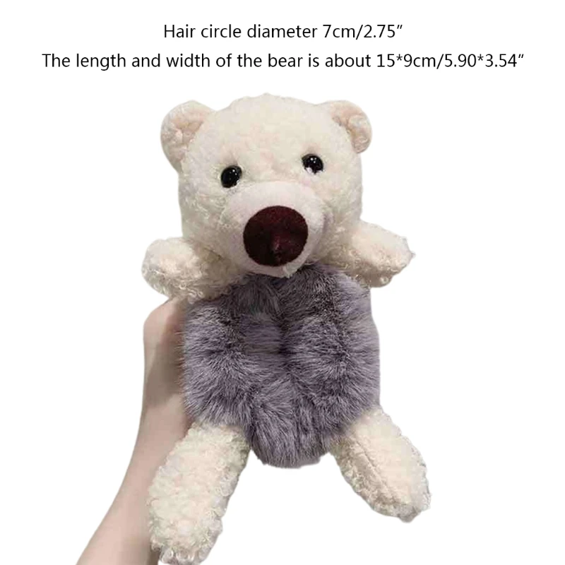 Пушистые резинки из искусственного меха для женщин и девушек, милые Мультяшные 3D резинки для волос с мишкой Тедди, резинки с помпоном, держатель для конского хвоста, аксессуары для волос