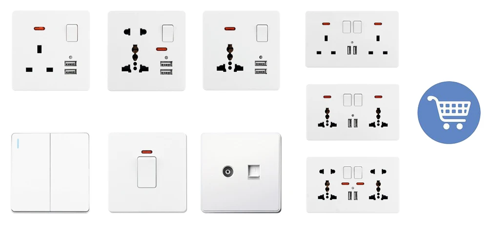 Настенные розетки питания, универсальные 3-контактные двойные перек...