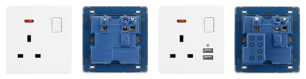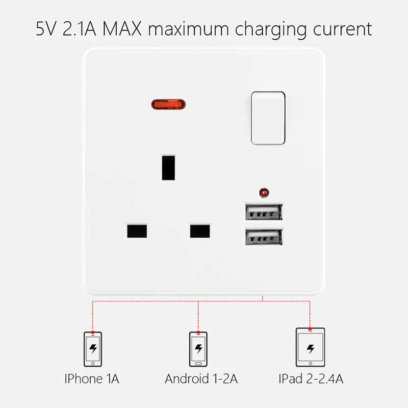 Белый Пластик Панель 13A 110V-250V UK Стандартный выход 2.1A 5V Dual USB Автомобильное зарядное устройство Зарядное устройство Порты светодиодный индикатор с двойными стенками, Мощность разъем