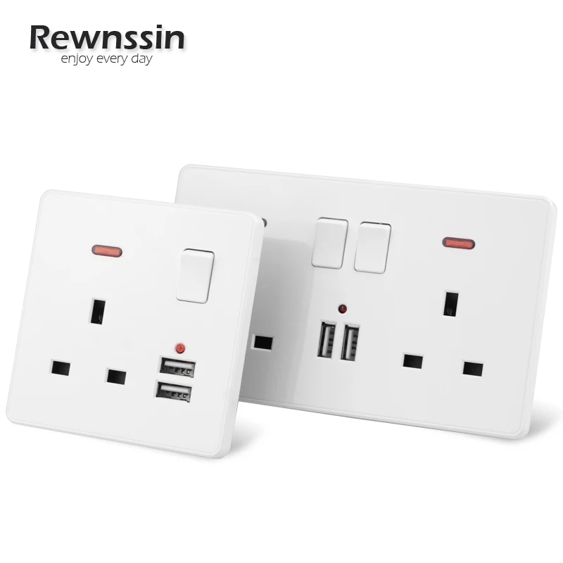 Великобритания стандартный разъем питания 13A двойной USB порт свет...