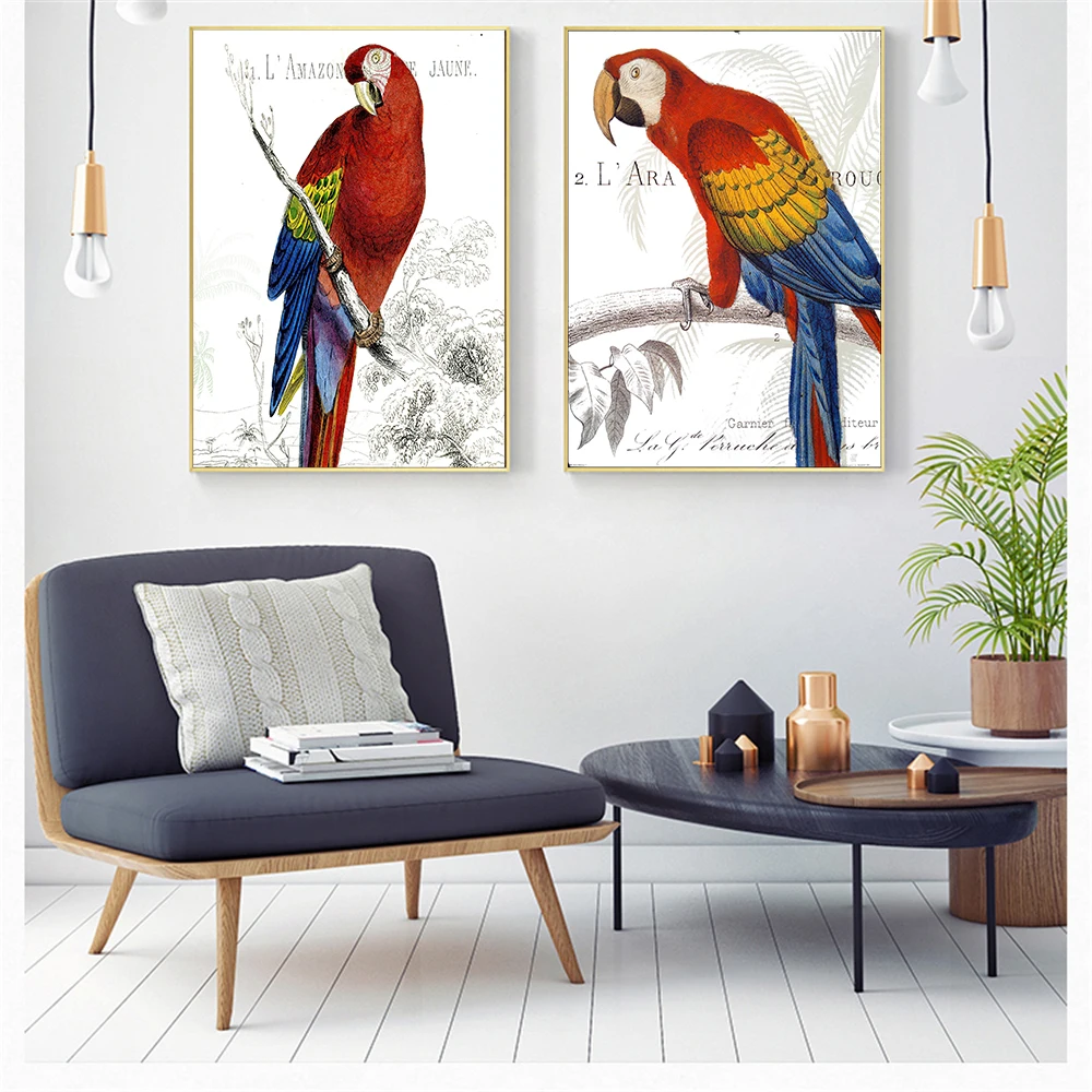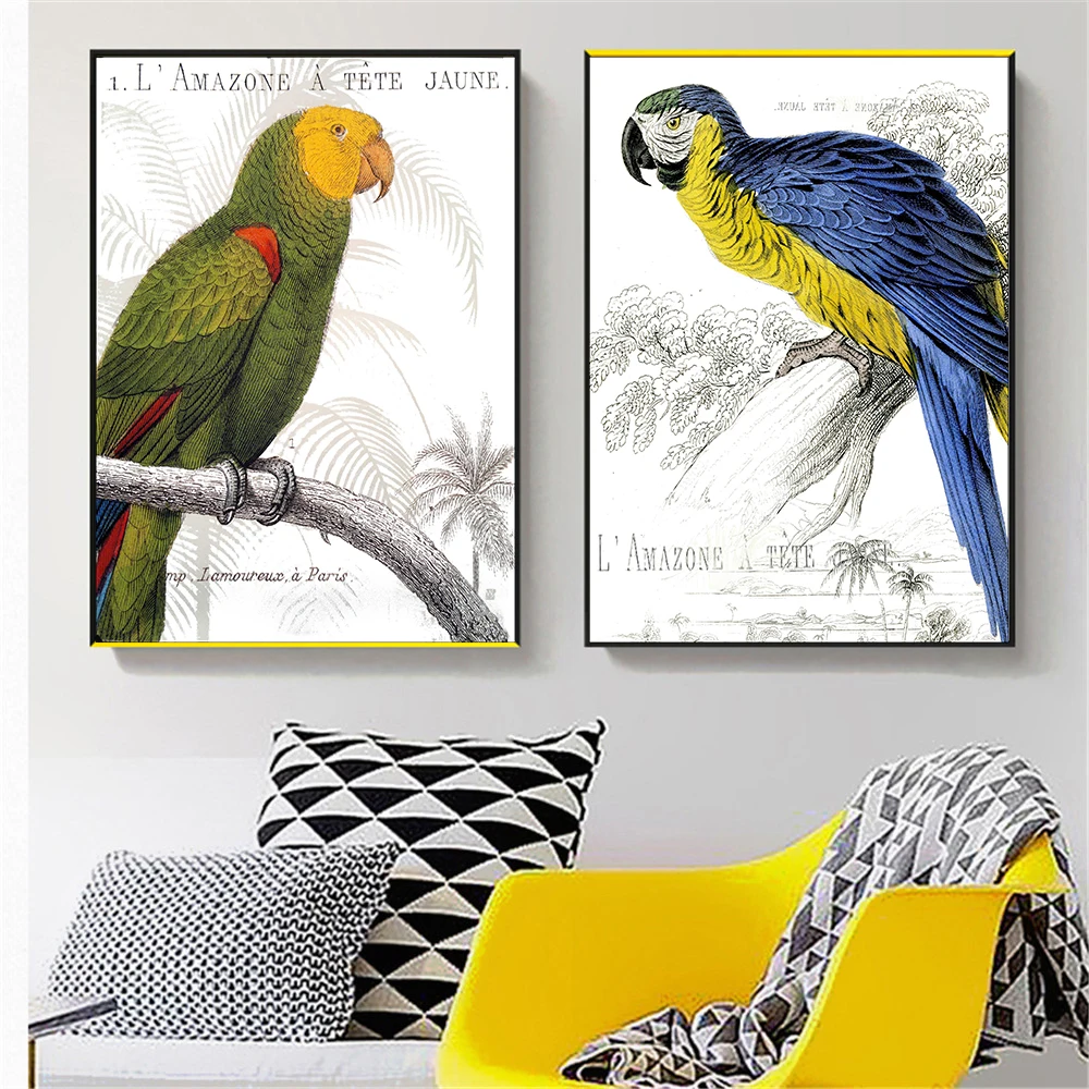 Настенный постер в стиле ретро с птицами, винтажные холщовые украшения для гостиной, современный минималистичный Декор