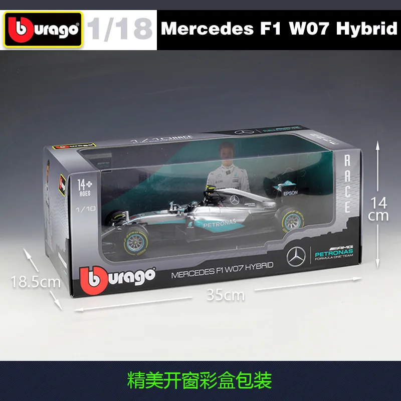 Bburago 1:18 Mercedes-Benz F1 W07 гибридная модель гоночной команды...
