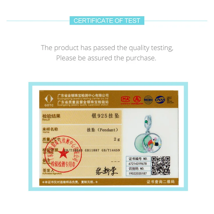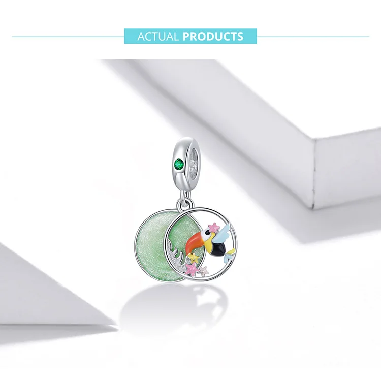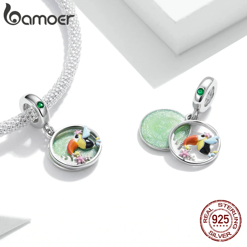 BAMOER 925 Стерлинговое серебро зеленый Warbler подвеска красочный ...