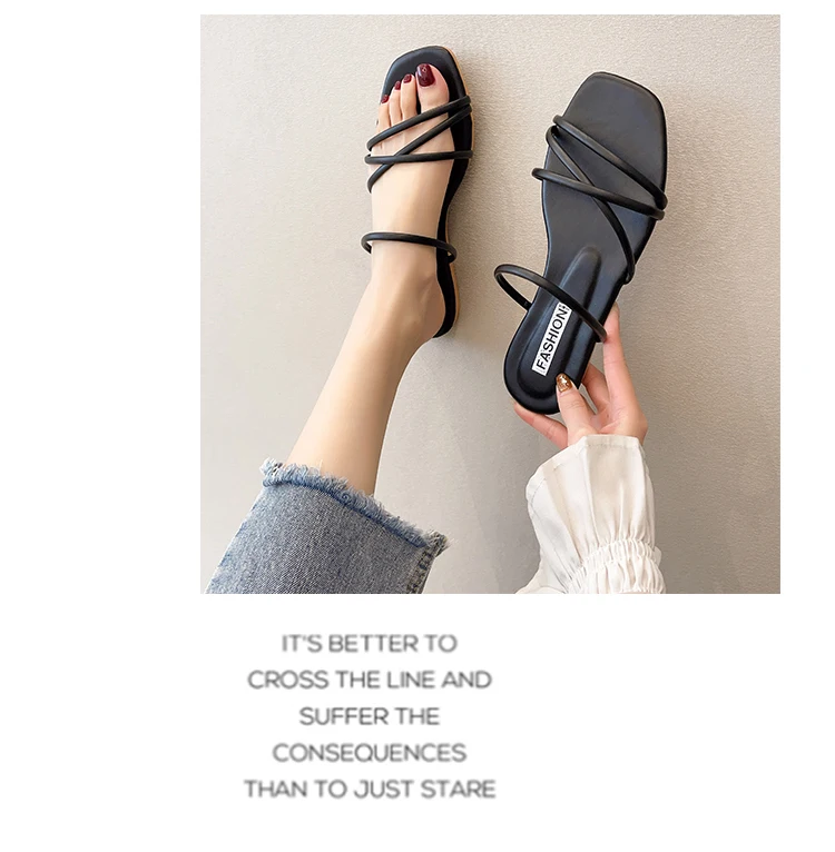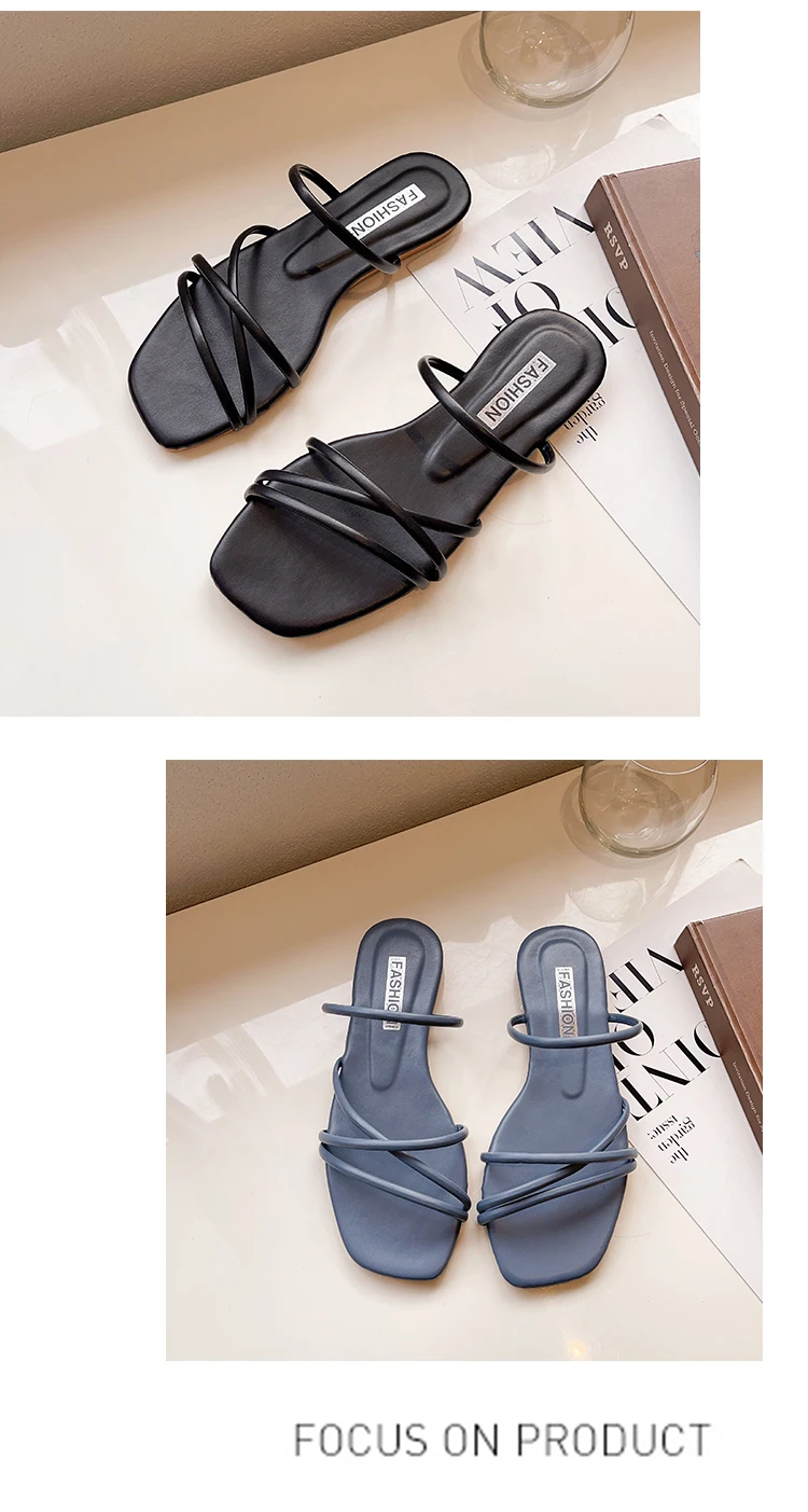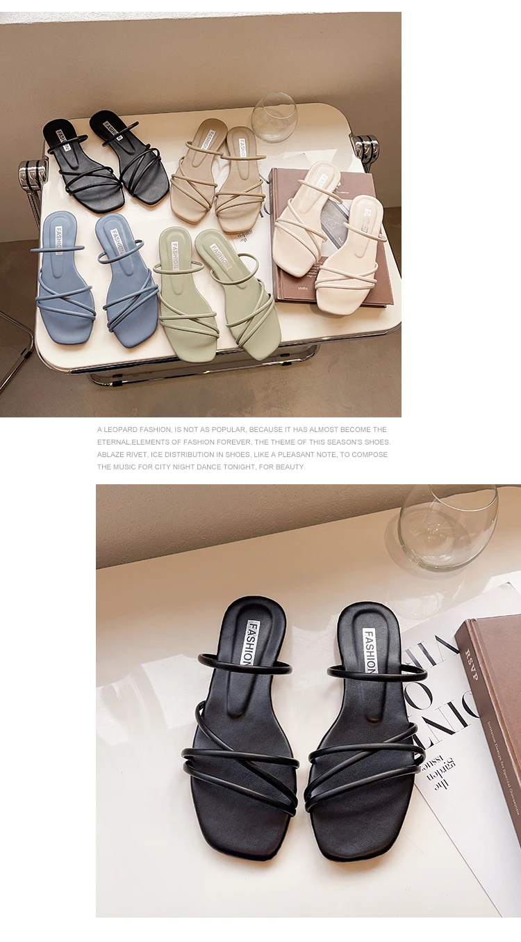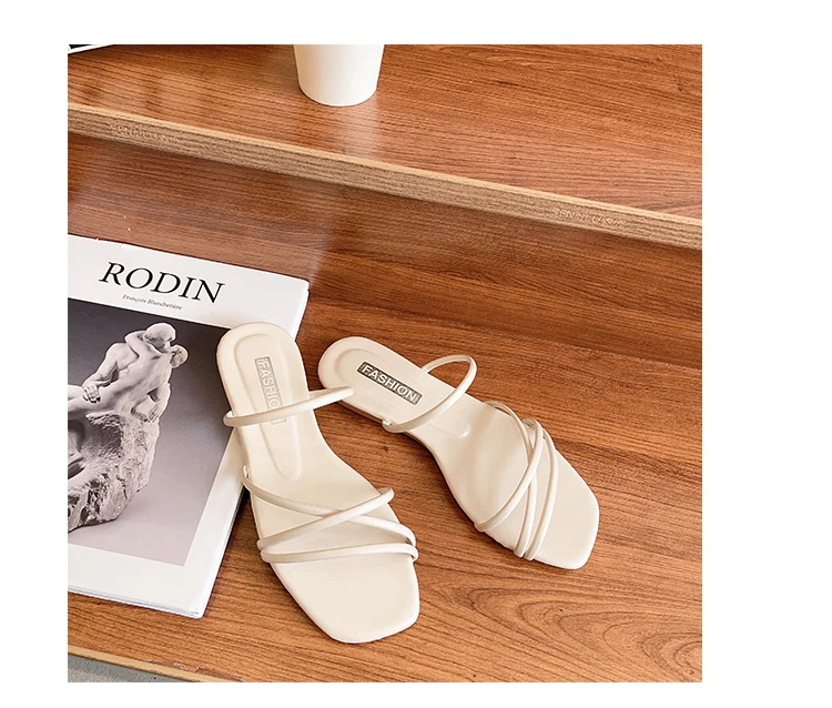 Шлепанцы женские на плоской подошве, сандалии с квадратным носком, ...
