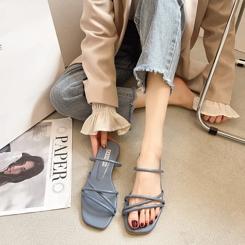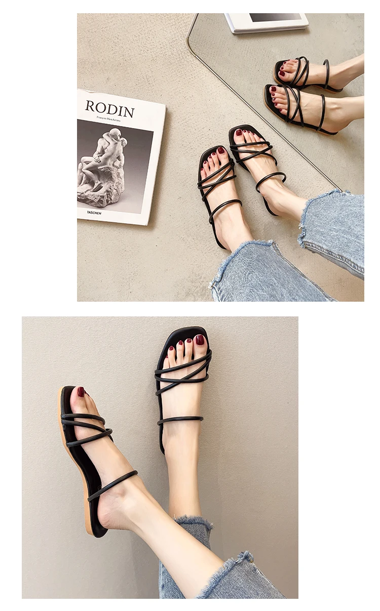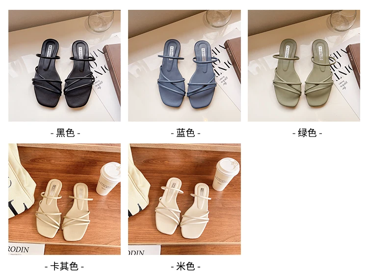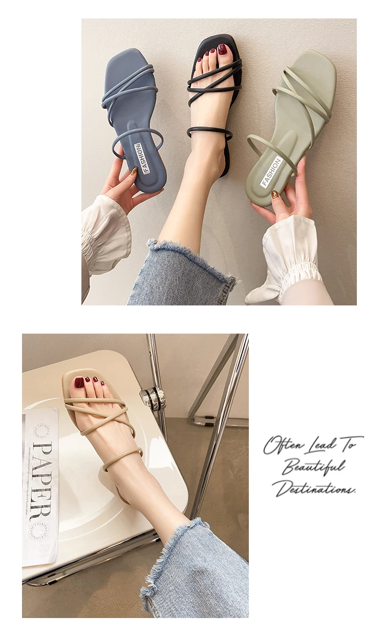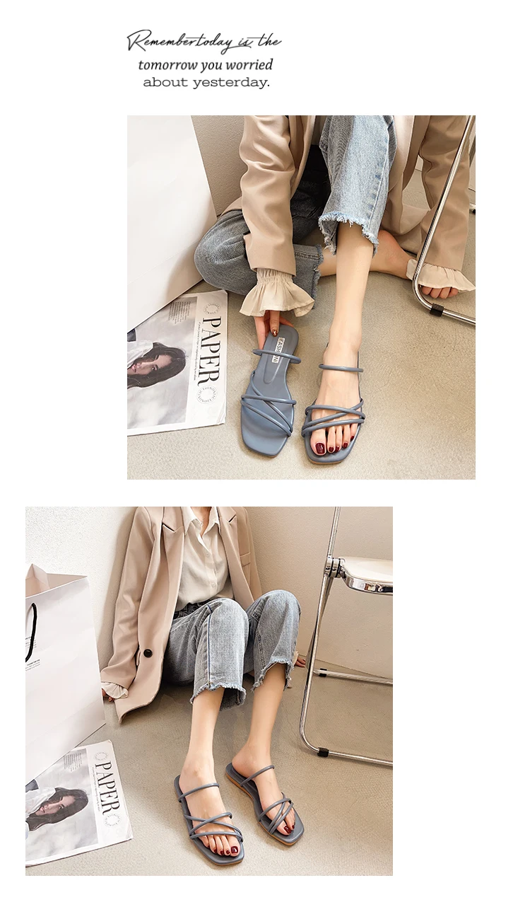 Шлепанцы женские на плоской подошве, сандалии с квадратным носком, ...