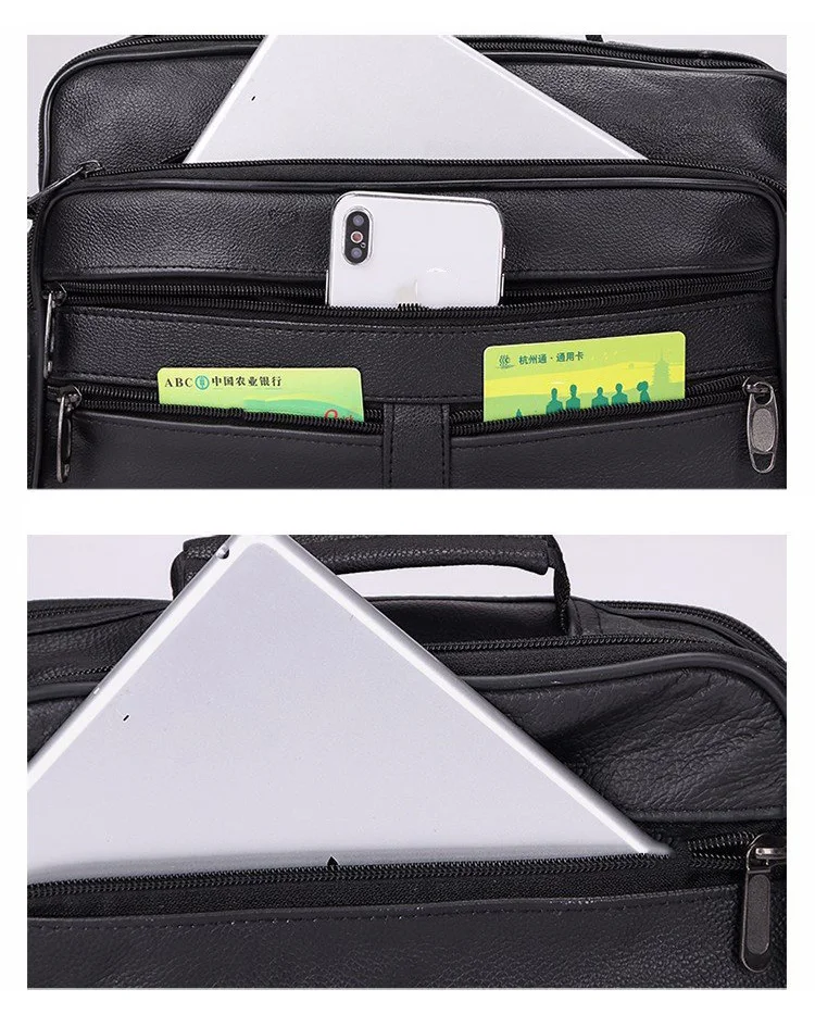 Сумка-мессенджер Мужская, из натуральной кожи, на молнии, Черная