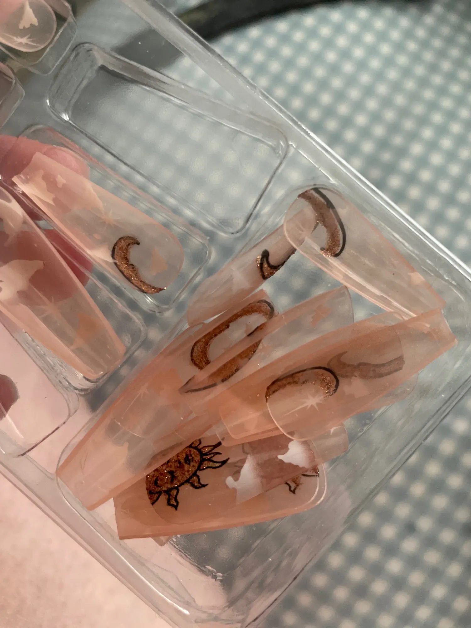 Накладные ногти, 24 шт., с изображением Солнца и Луны, съемные, пол...
