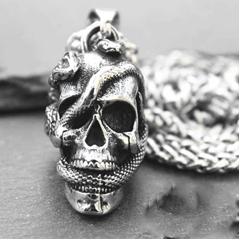 Изящная ручная работа Ретро властная трехмерная двойная змея в виде черепа подвеска Мужская и женская бижутерия ожерелье