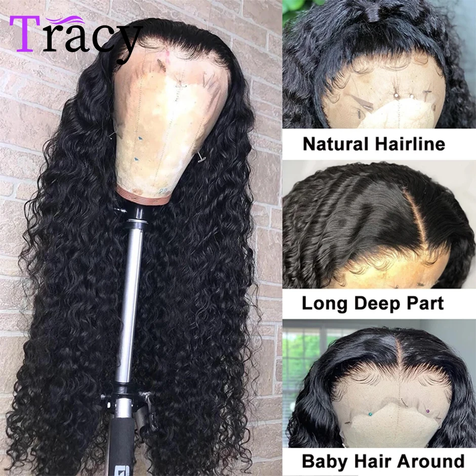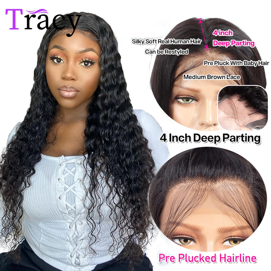 13x4 HD прозрачный кружевной передний парик из человеческих волос для женщин, предварительно выщипанные Бразильские глубокие волнистые кружевные передние парики, отбеленные с детскими волосами