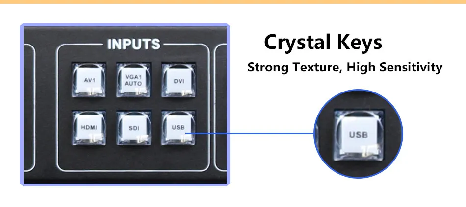 ● Поддержка usb-плеера Новый дизайн с дистанционным управлением ● Поддержка аудиовыхода синхронизации Плавно Переключайте любой канал Функция обнаружения сигнала > Максимальное разрешение Qutput: 1920*1080 @ 60 Гц ► 5-канальный аналогово-цифровой видео Вход: 1 HDMI, 1 DVI, 1 VGA, 1 AV, 1 USB, (опционально расширение: 1 WIFI, 1 SDI) • 2-канальный цифровой видеовыход: 2 DVI Настройки регулировки быстрой ручки ● Поддержка ввода SDI и петли SDI Черный Или замороженный ключ Функция блокировки ключа ► 10 режимов сохранены и отозваны