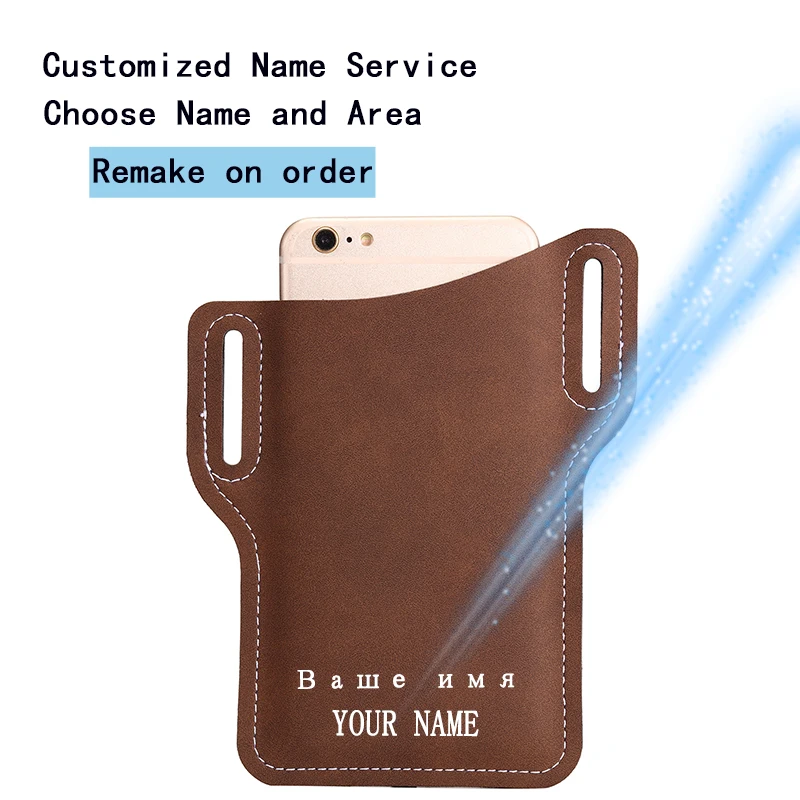 Чехол-кобура для мобильного телефона, с гравировкой имени, поясная сумка, реквизит, кошелек для телефона из искусственной кожи