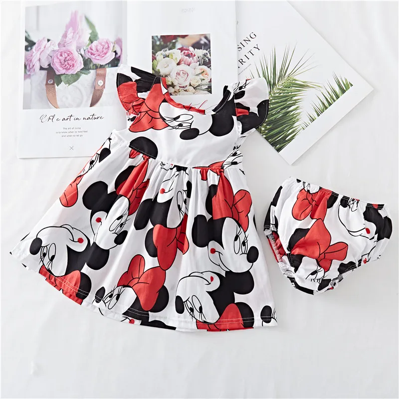 ; Детское платье; Милое летнее платье для малышей, для маленьких девочек плиссированное платье с цветочным рисунком сарафан трусики одежда платье Минни-Маус + короткие трусикиштаны на подгузник комплект одежды