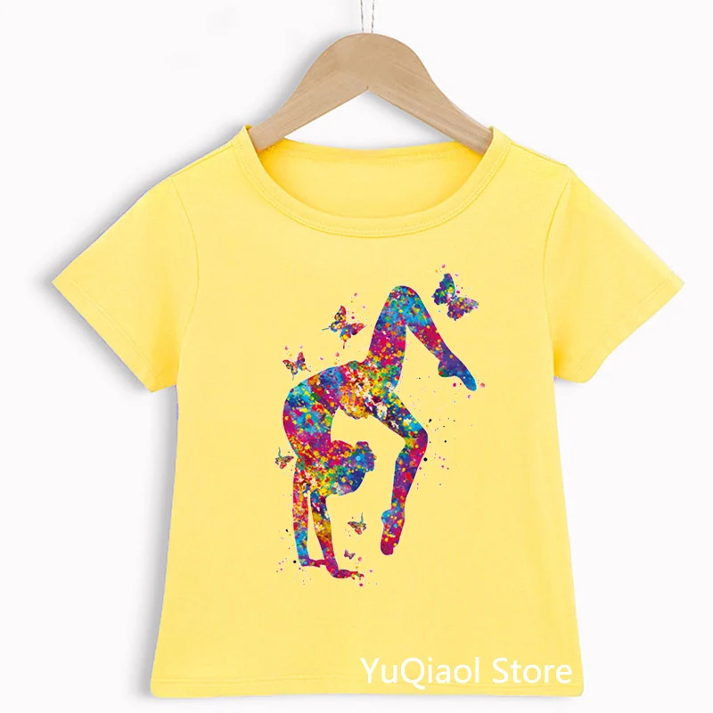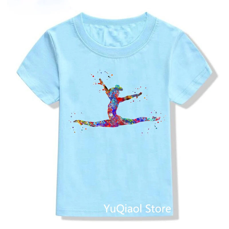 Акварельная футболка с художественным принтом гимнастики для малень...