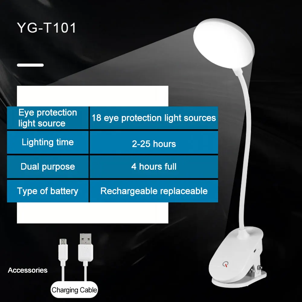 Беспроводная Настольная лампа с зажимом, перезаряжаемый ночник для ...