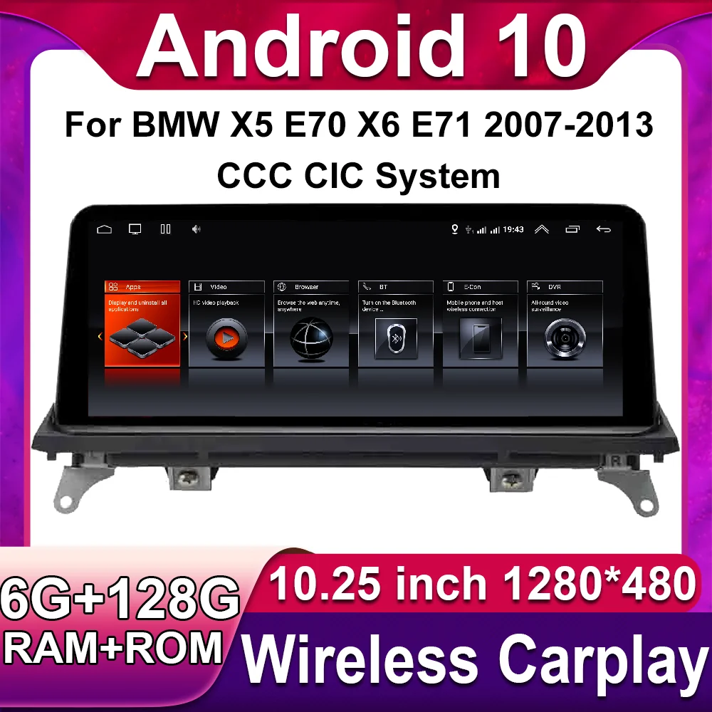 10,25 ''Android 10 для BMW X5 E70 X6 E71 2007 - 2013 система CCC CIC автомобильное радио стерео Беспроводная навигация Carplay GPS Мультимедиа