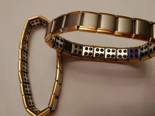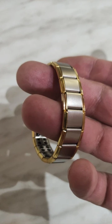 Браслет не является магнитным. На браслете нет ни одного магнита. Я попросил торговца изменить описание, чтобы не запускать других людей, таких как я, но он этого не сделал.