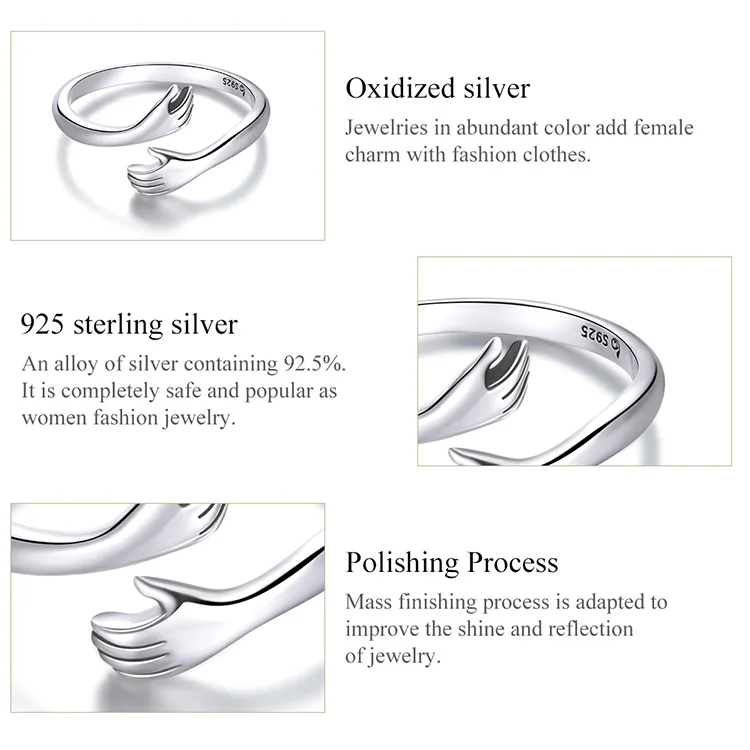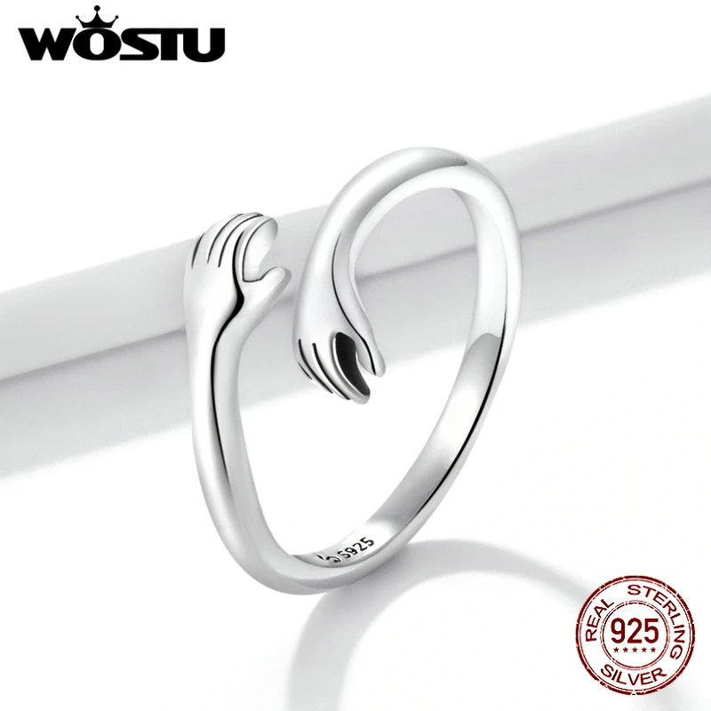 WOSTU 925 пробы серебро простой Hug кольцо регулируемые кольца палец для Для женщин элегантные серебряные украшения CTR176