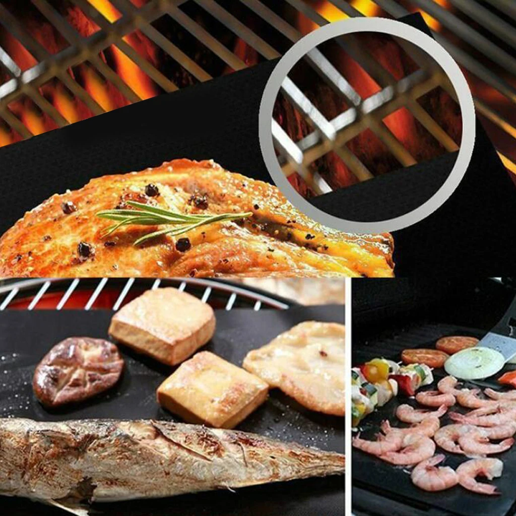 Открытый Кемпинг барбекю антипригарный жаростойкий барбекю гриль выпекайте коврик.Изготовлен из высококачественного стекловолокна и не содержит PFOA, соответствует стандартам FDA.Эти антипригарные коврики сохранят питание и вкус пищи, предотвращая появление бликов, вызванных капельным смазочным веществом, которые заставляют ваше мясо обгореть и высушить, вы будете наслаждаться настоящими блюдами для барбекю.Легко хранить, вы можете легко хранить эти коврики плоскими или свернутыми после использования. Это позволит сэкономить много места по сравнению с вашими лотками для гриля.Жаростойкие, многоразовые и легко моющиеся, отличные принадлежности для приготовления барбекю на гриле для приготовления шашлыка, Шашлыка, стейка, бекона, креветок, морепродуктов, овощей.