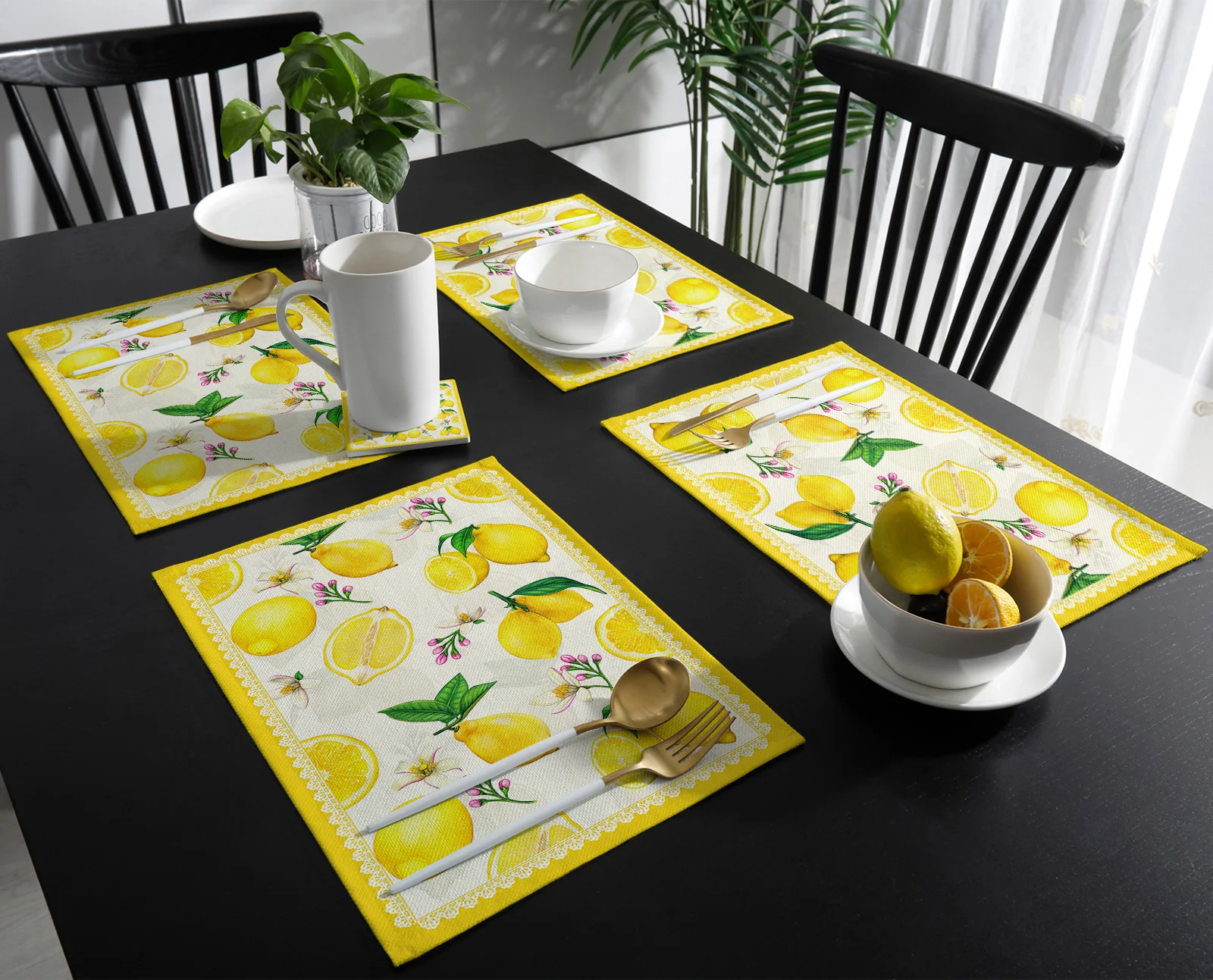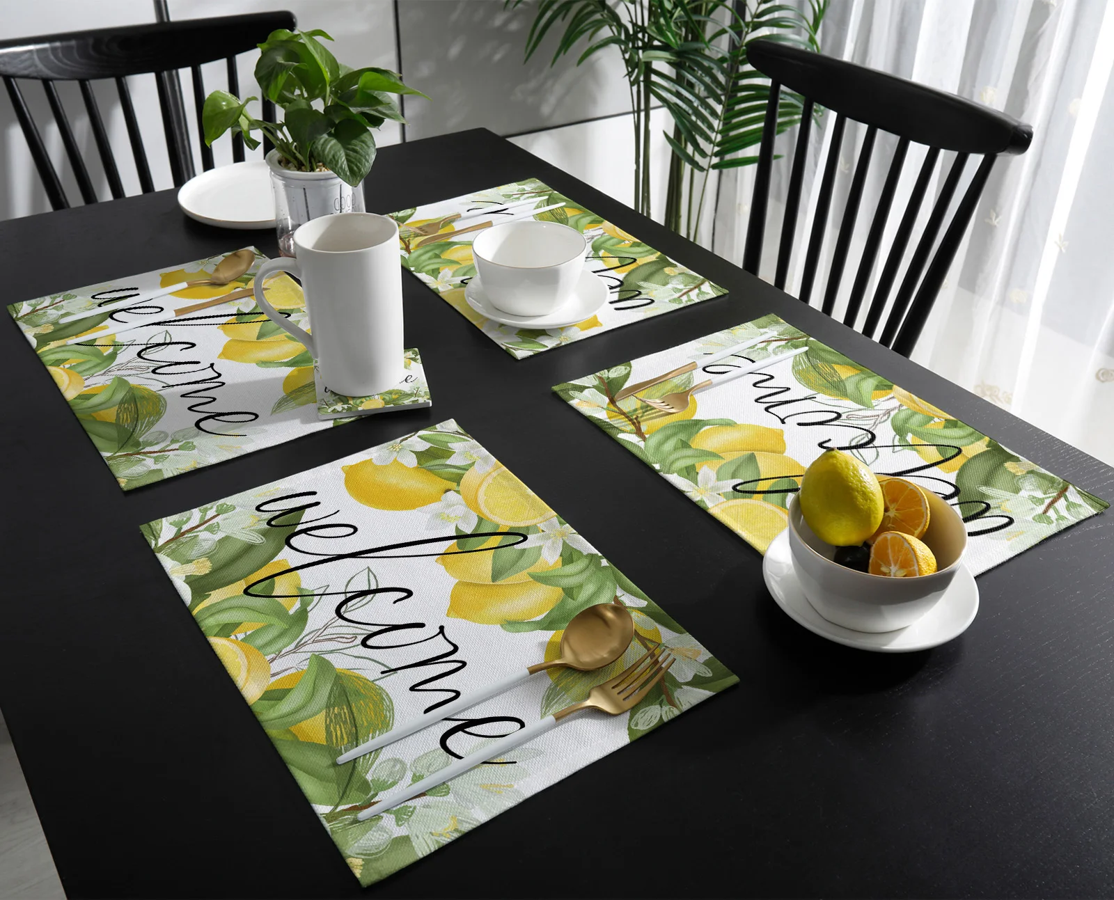 Летние декоративные скатерти для стола, лимон, цветы, листья, кухонная столовая скатерть, украшение для свадебного стола