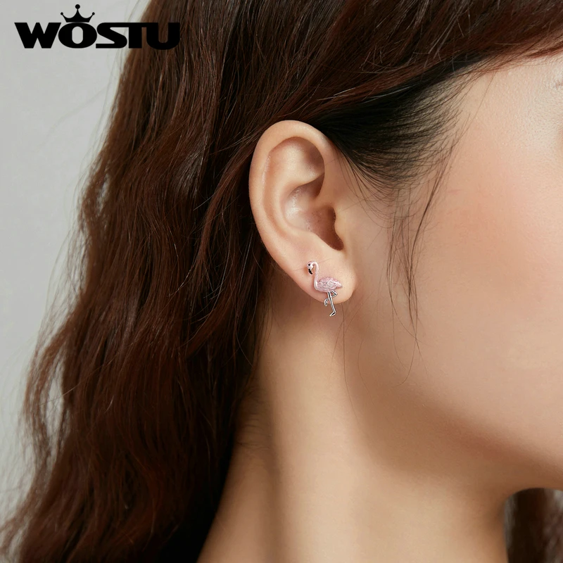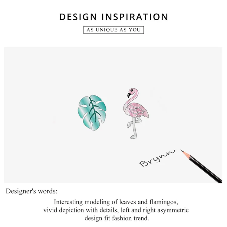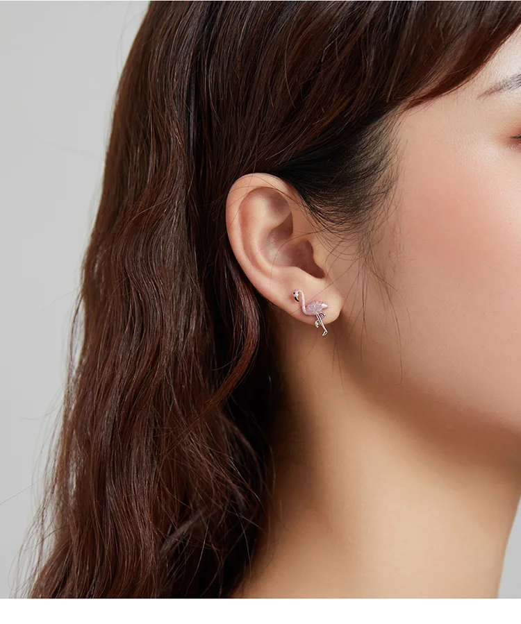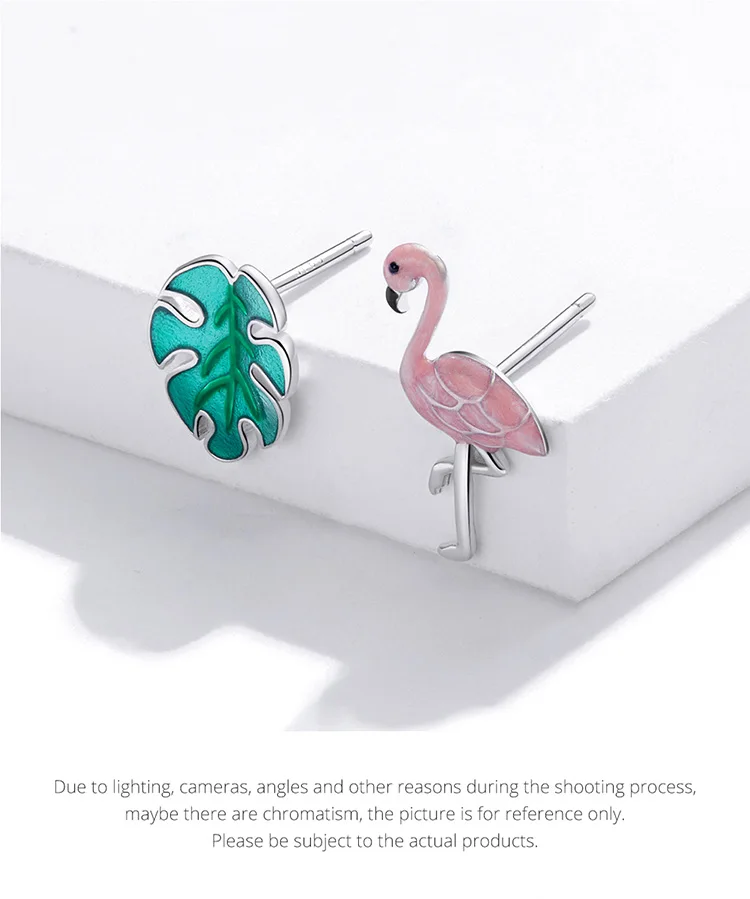 Женские серьги-гвоздики в виде фламинго и листьев, из серебра 925 пробы, с мультяшными животными, CQE1124