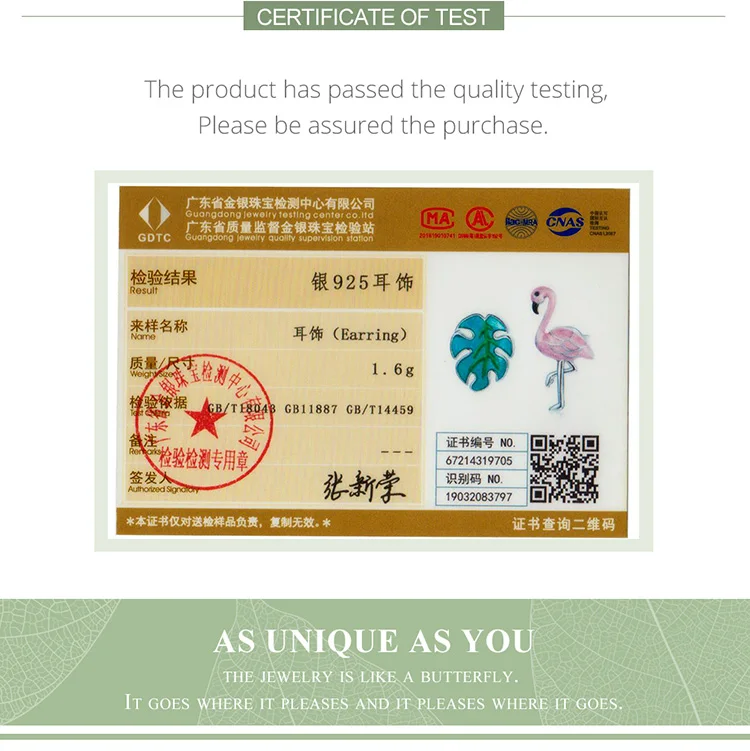 Интересные серьги с листьями и фламинго 100% 925 стерлингового сере...