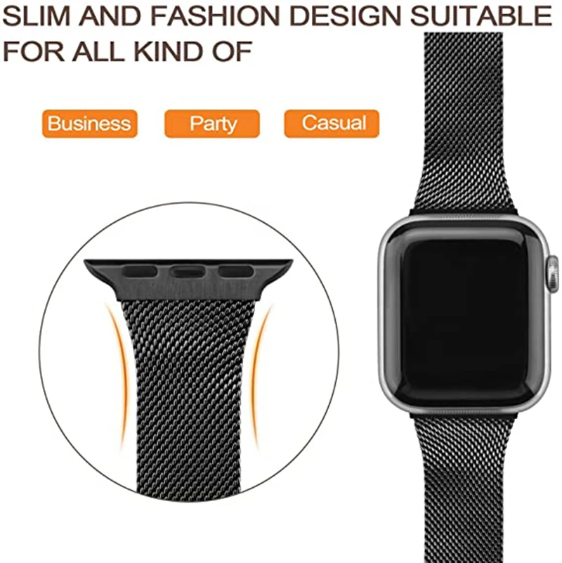 Металлический тонкий ремешок для Apple Watch 76SE54321, 38 мм, 40 мм, 41 мм, 45 мм, из нержавеющей стали, Миланский ремешок для часов iwatch 42 мм, 44 мм