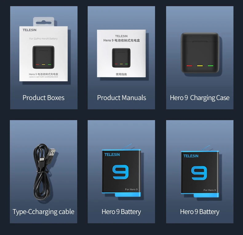 Зарядное устройство TELESIN для GoPro 9, зарядное устройство со све...