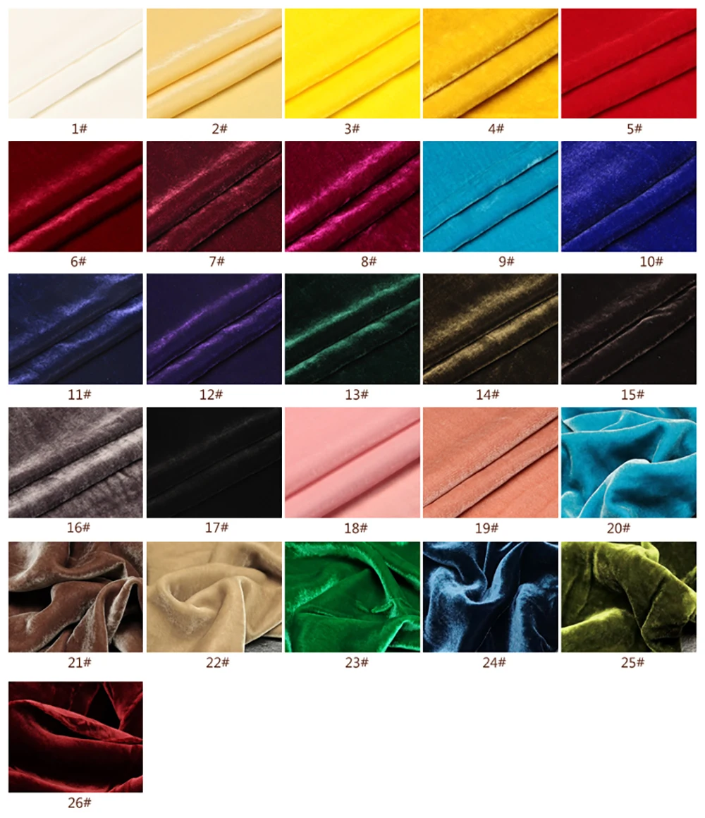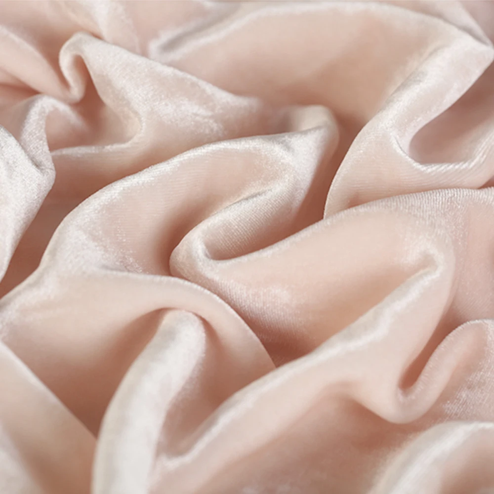 Шелковый бархат-это вид шелковой ткани, элегантный, роскошный, классический, как всегда. Основа ткани изготовлена из 100% шелка жоржет, а поверхность бархата-из 100% полиэстера. Ткань очень мягкая, прохладная для кожи и теплая осенью, поэтому она в основном сделана в качестве костюма или вечернего платья.