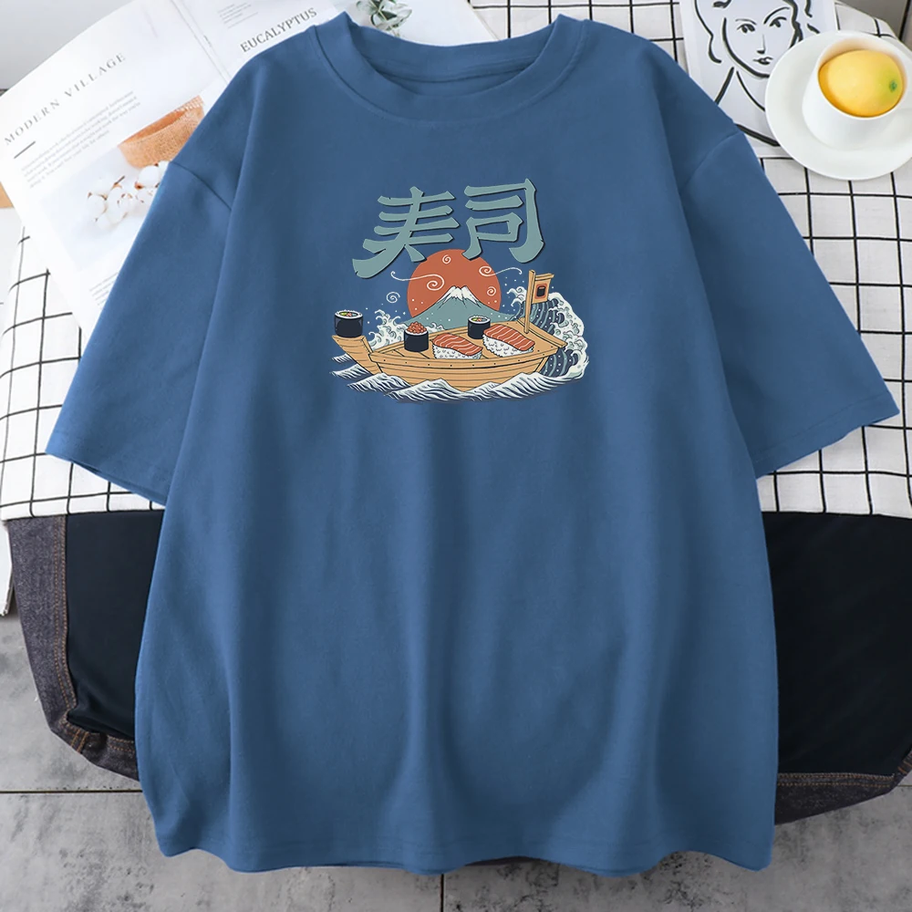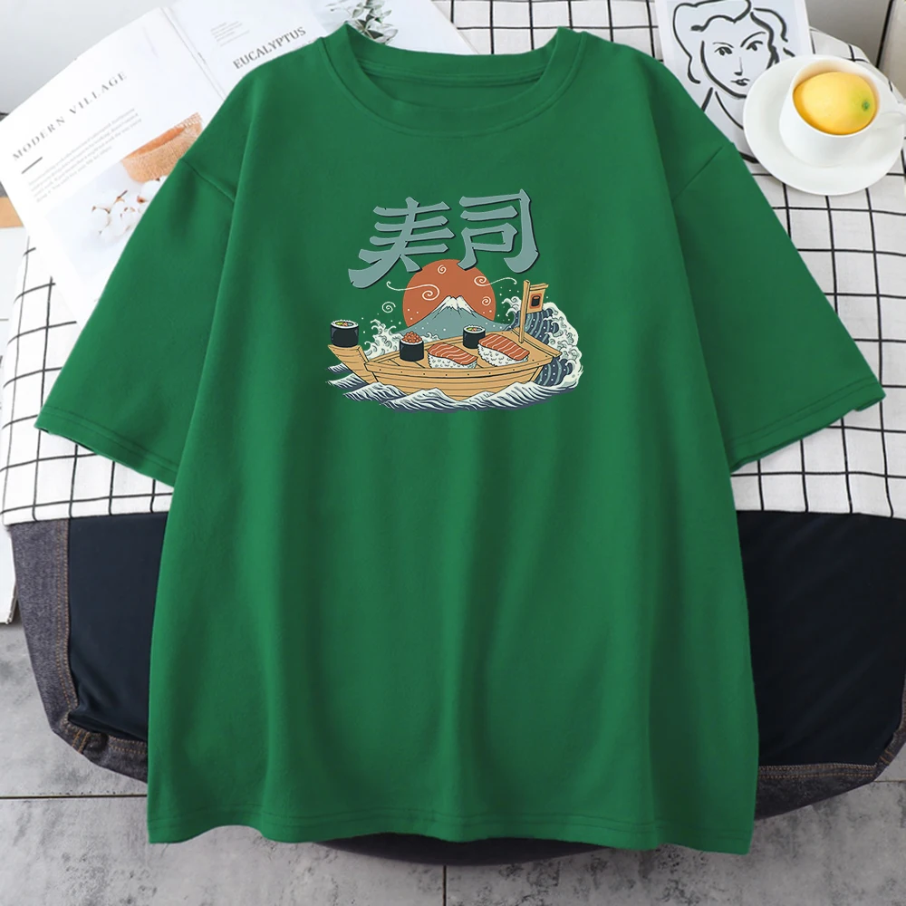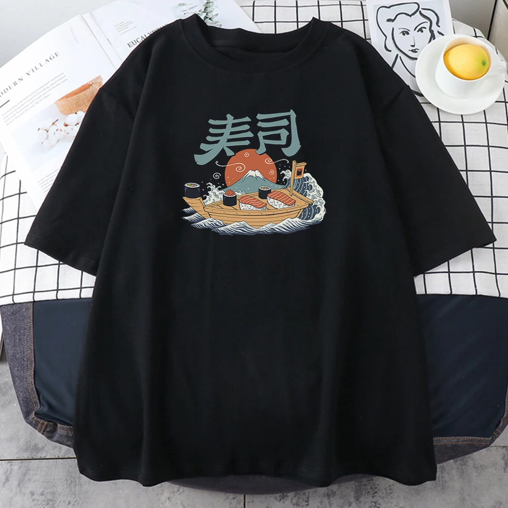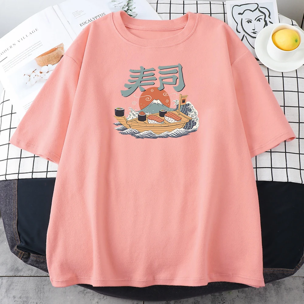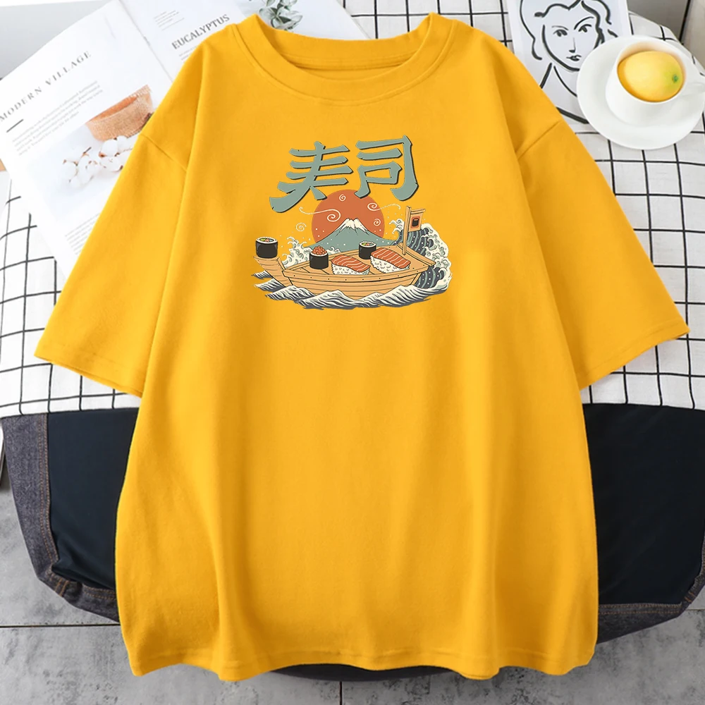 Футболка женская с принтом суши-лодки, Классическая Повседневная стильная рубашка с принтом Fuji, большие размеры, на весну-лето