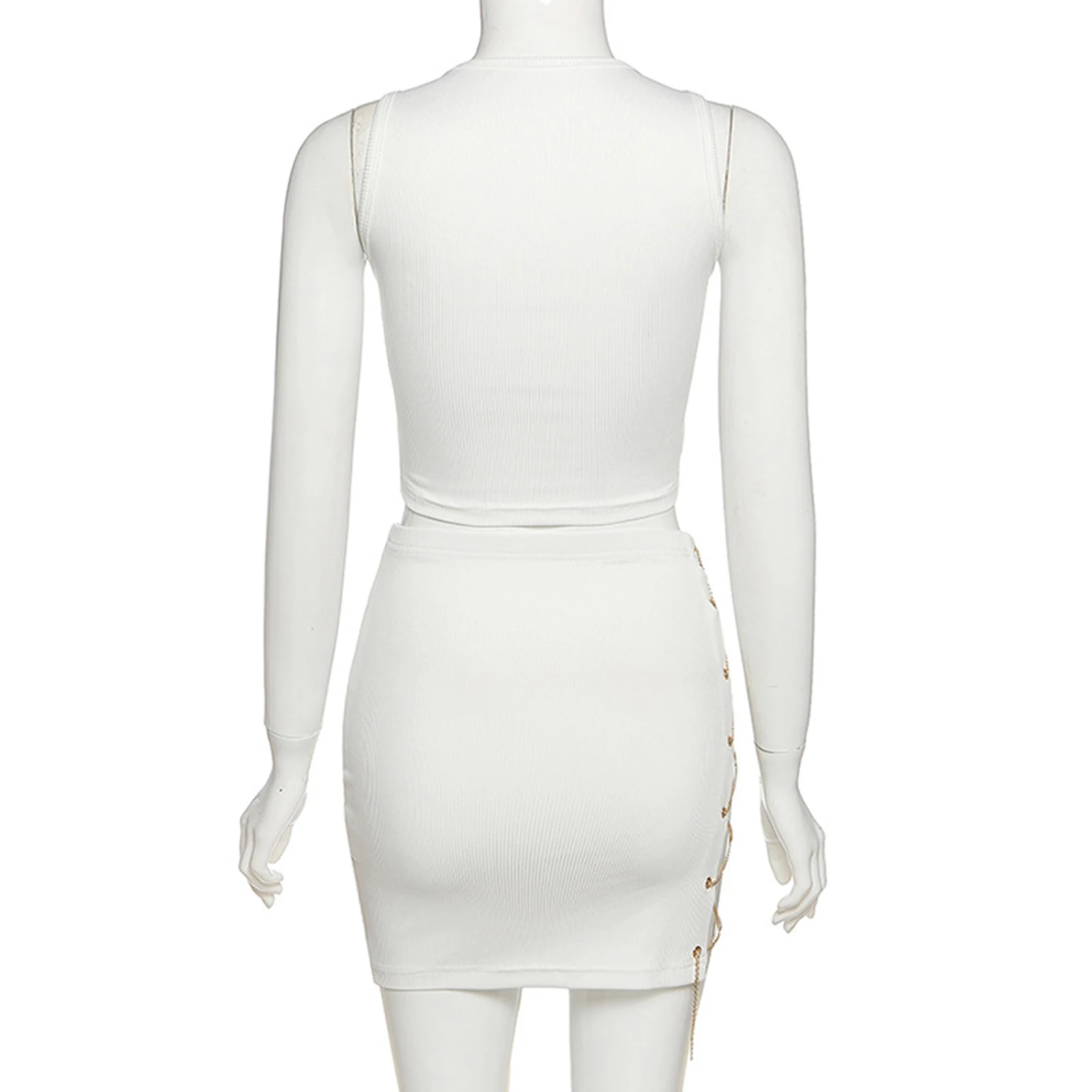 Особенности: Женский однотонный костюм из двух предметов на шнуровке с металлической цепочкой; Клубная одежда; Укороченный топ на бретелях с юбкой с высокой талией. Высококачественная ткань, мягкая и дышащая, обеспечивает комфортное ношение. Обувь на шнуровке с металлической цепочкой; Ребристый дизайн; Клубная одежда из двух предметов с вырезами. Модный комплект из двух предметов: укороченный топ на бретелях с юбкой с высокой талией. Отлично подходит для свиданий, вечерние, Клубные, музыкальные фестивали, концерты, каникулы, пляж, путешествия и т. Д.