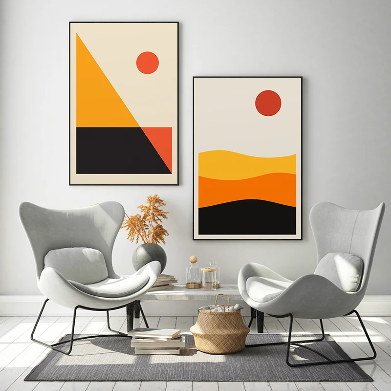 Абстрактный геометрический рассвет закат печать Пейзаж Плакат Холст Картина Настенная живопись картинки для интерьера гостиной домашний декор