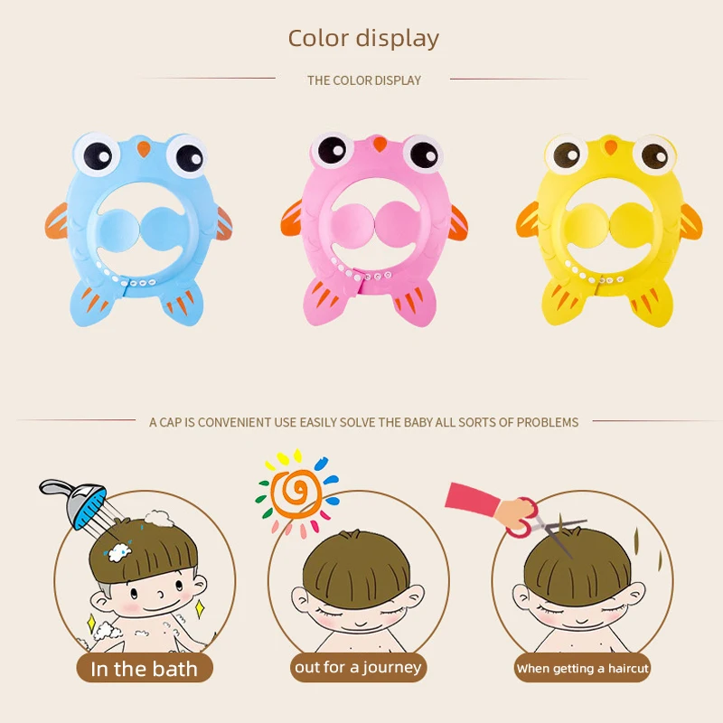Милая мультяшная шапочка для детского шампуня, регулируемая водонепроницаемая шапочка для защиты ушей, детская шапочка для ванны, аксессуары для ванны