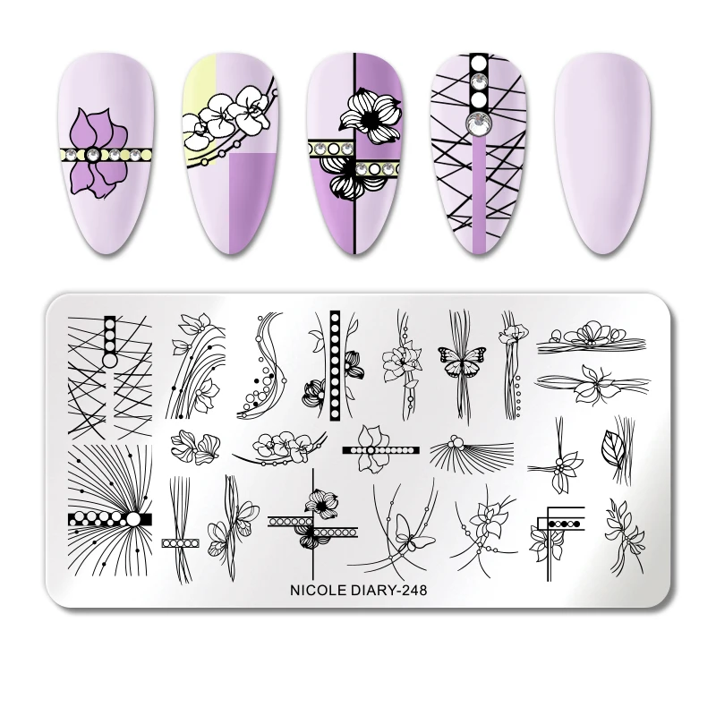 Трафареты NICOLE DIARY для стемпинга ногтей, шаблоны для ногтевого дизайна в китайском стиле, с буквенным принтом, с цветами