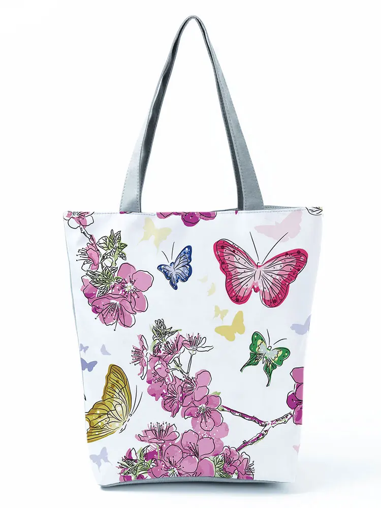 Женская многоразовая сумка-тоут с рисунком бабочки, с цветочным принтом