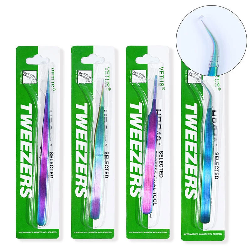 Цветные антистатические пинцеты, прямые и изогнутые локти для нейл-...
