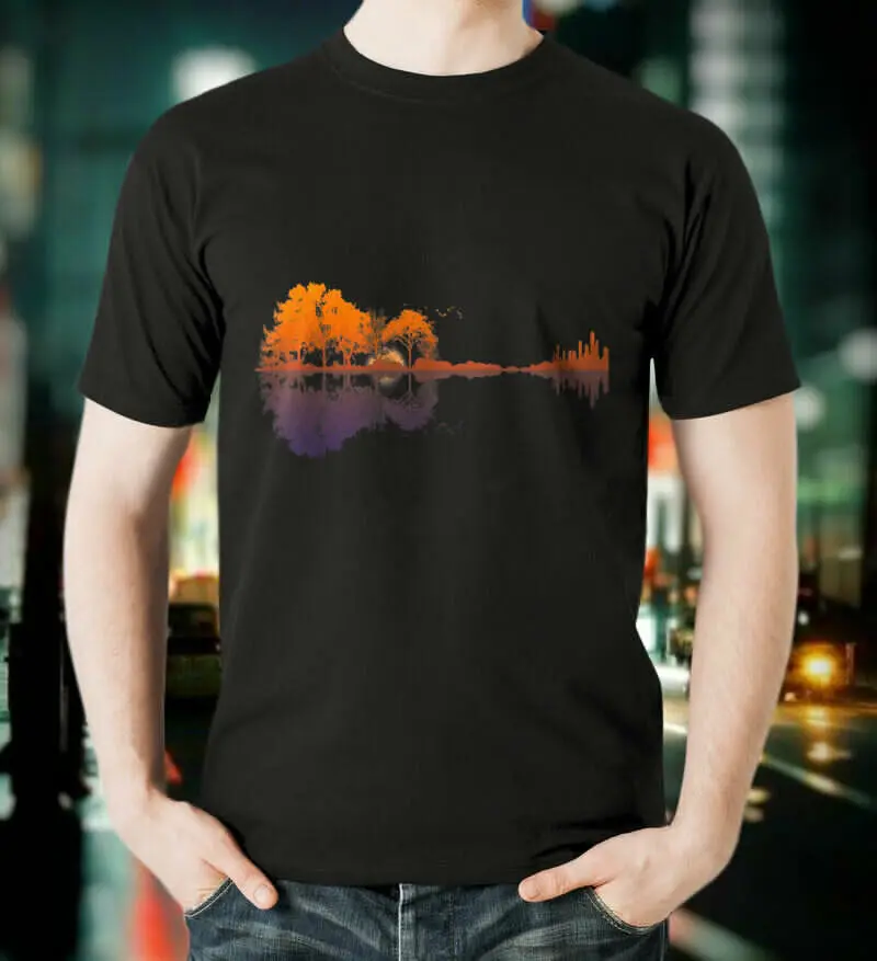 Футболка с изображением гитары озера отражений музыки и гитары влюбленных гитары