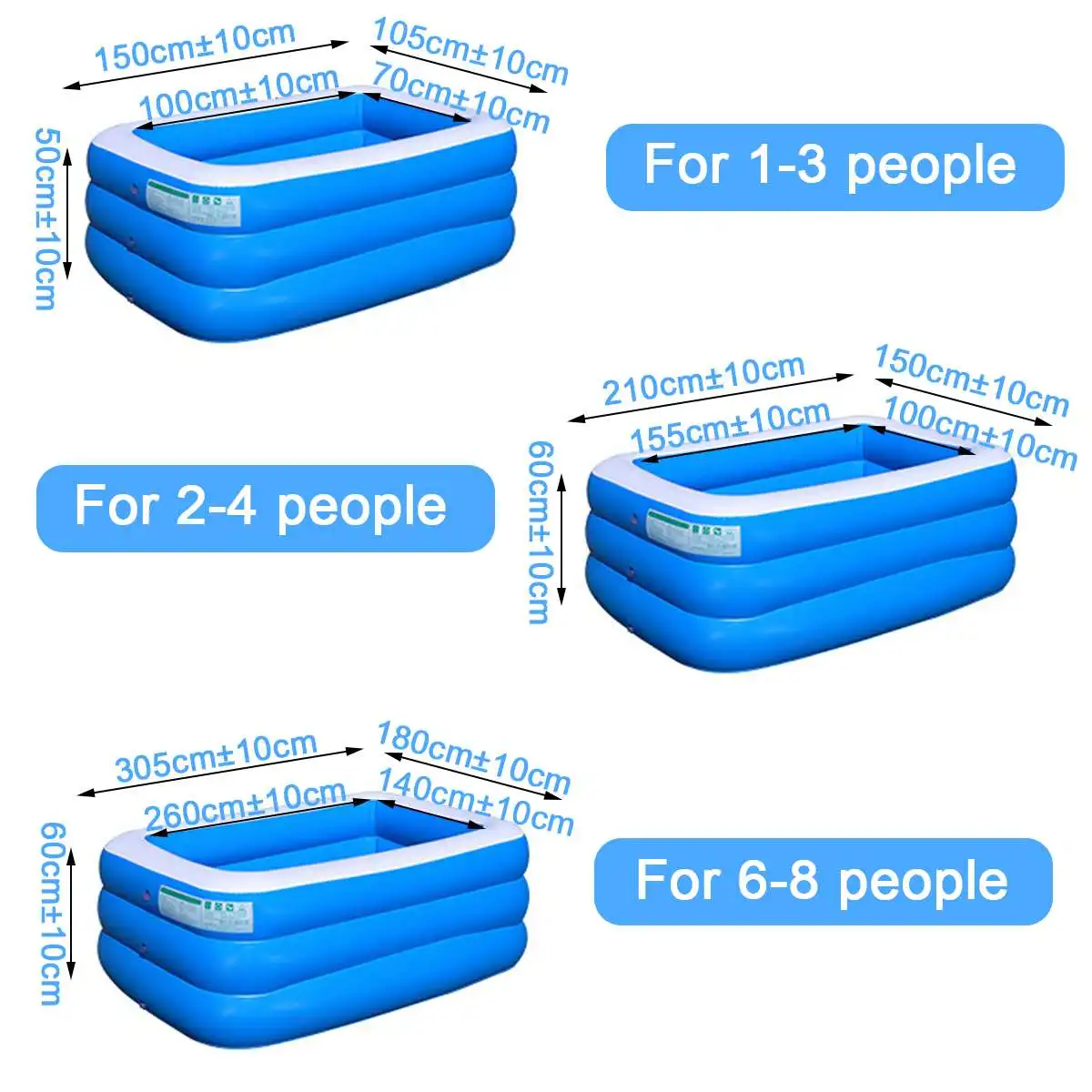 Посылка входит:1 надувной бассейнСпецификация:Название продукта: надувной бассейнМодель: F02901Цвет: синий и белыйМатериал: ПВХ (поливинилхлорид)Размер:-150x105x50 см (1-3 человека)-210x150x60 см (2-4 человека)-305x180x60 см (6-8 человек)Особенность:-Изготовлен из ПВХ высокой плотности, нетоксичен и долговечен.-Третье кольцо независимой конструкции воздушного шара, не беспокойтесь о протечках.-Портативная конструкция слива, Легкий Дренаж.-Отлично подходит для купания малыша, игры.-Множественный выбор размера.-Легко складывается и хранится, вы можете наслаждаться временем спа, в любом месте, просто накачивая его.