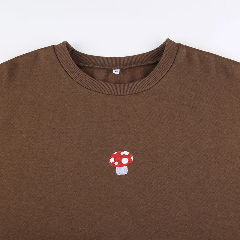 Свитшот с вышивкой в виде грибов в стиле Харадзюку, с круглым вырез...