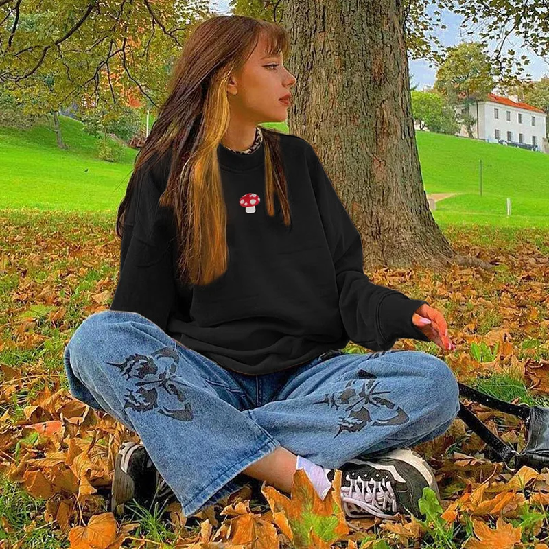 Модные свитшоты Y2k в стиле Харадзюку с вышивкой в виде Инди и гриб...