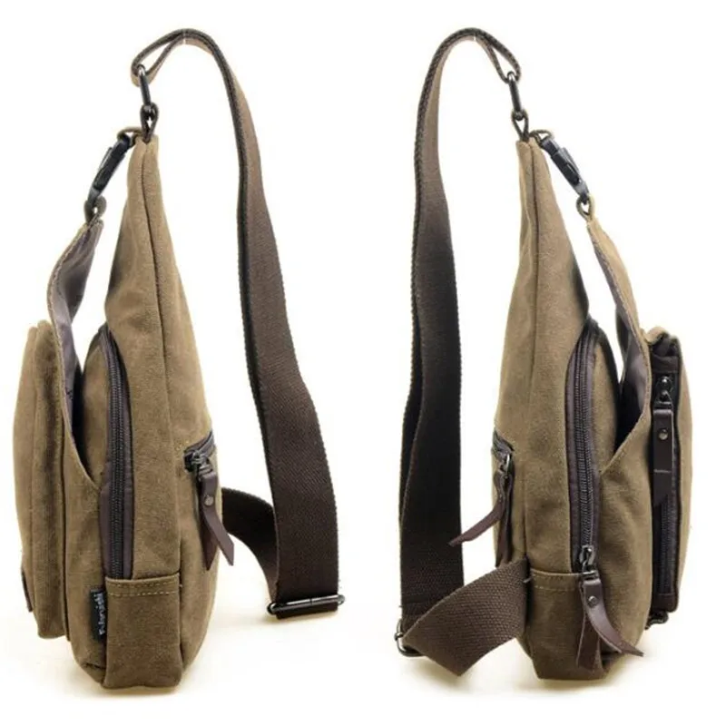 Сумка на плечо Мужская холщовая, нагрудная сумочка-слинг через плеч...